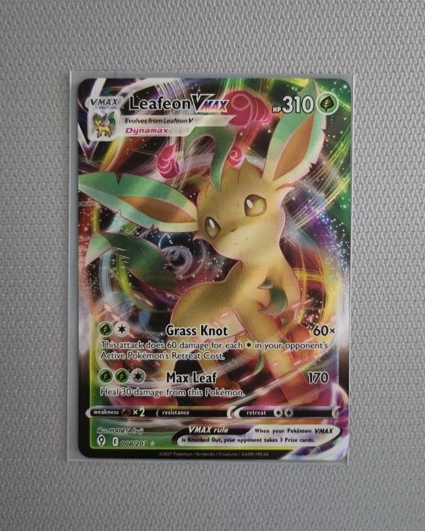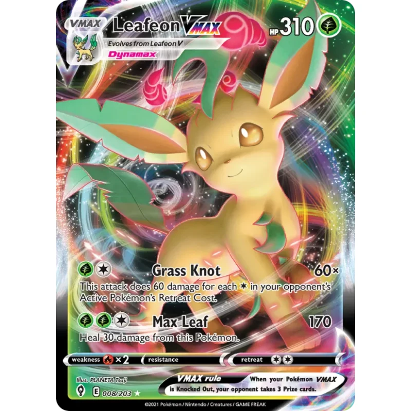 Leafeon VMAX 008/203 Full Art Ultra Rare Eeveelutions Sword Shield Evolving Skies Pokemon Card TCG Authentic Original
