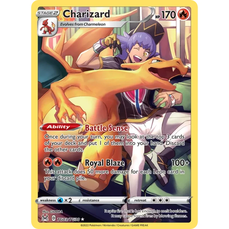 Leon's Charizard TG03/TG30 Trainer Gallery Full Art Holo Rare SWSH Lost Origin Pokemon Card TCG Authentic Original