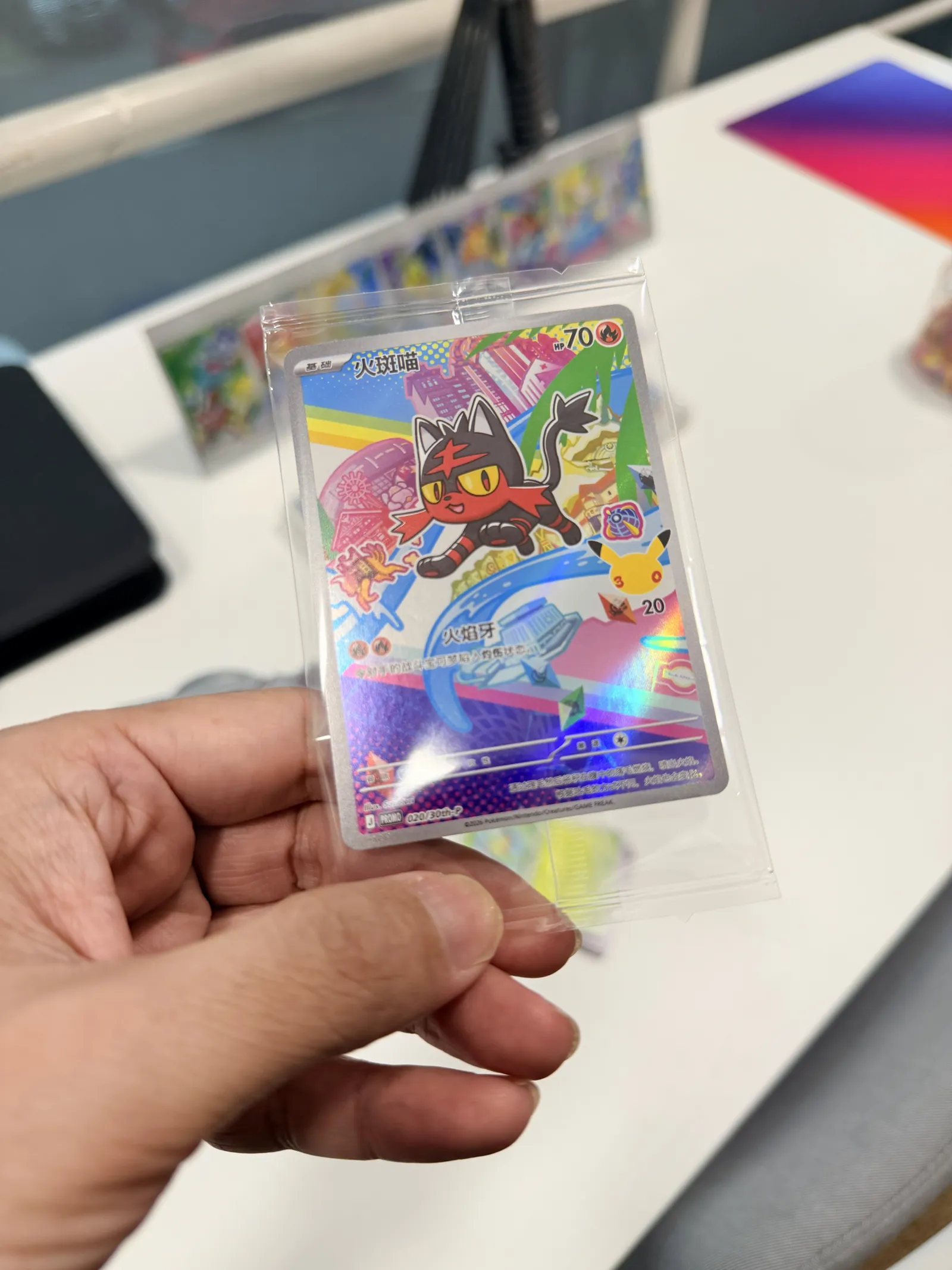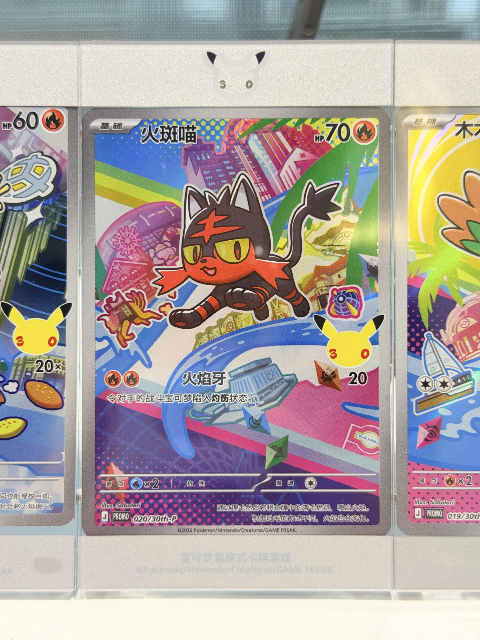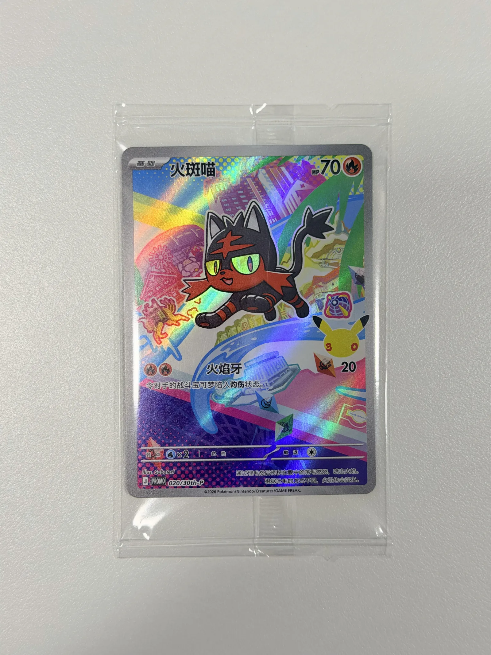 Part of the Pokémon 30th Anniversary “First Partner Illustration Collection” Series 1, this Litten (020/159) promo is one of the official starter Pokémon illustration rares released to celebrate 30 years of Pokémon 🎉