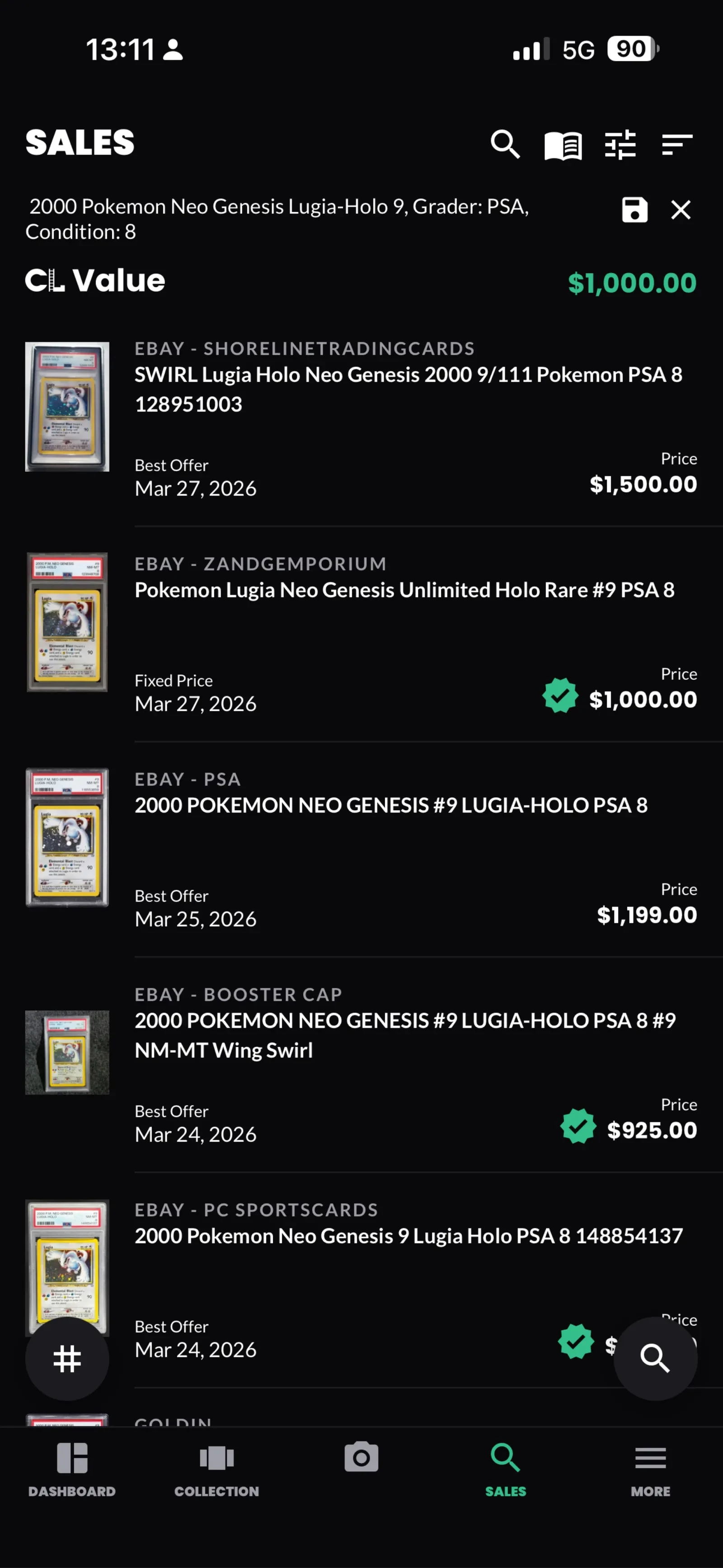 Lugia 009/111 Neo Genesis Unlimited PSA 8 with Big Swirl