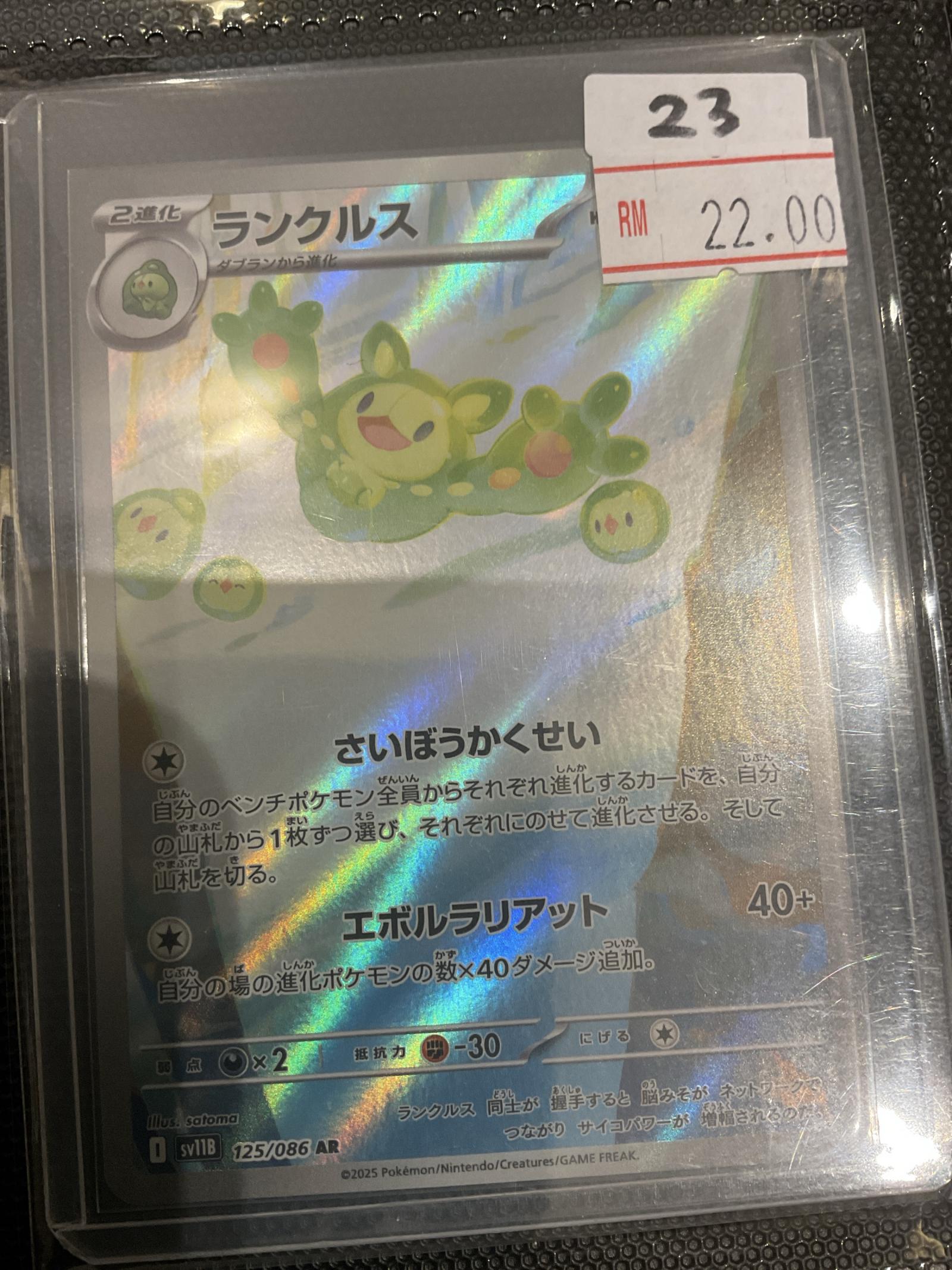 Japanese holographic foil Lurantis card, collector number 125/086 from the SV11B set. Illustrated by satoma. This card is playable in the Pokémon TCG meta. Card code: 125086. The card is sealed in protective casing.