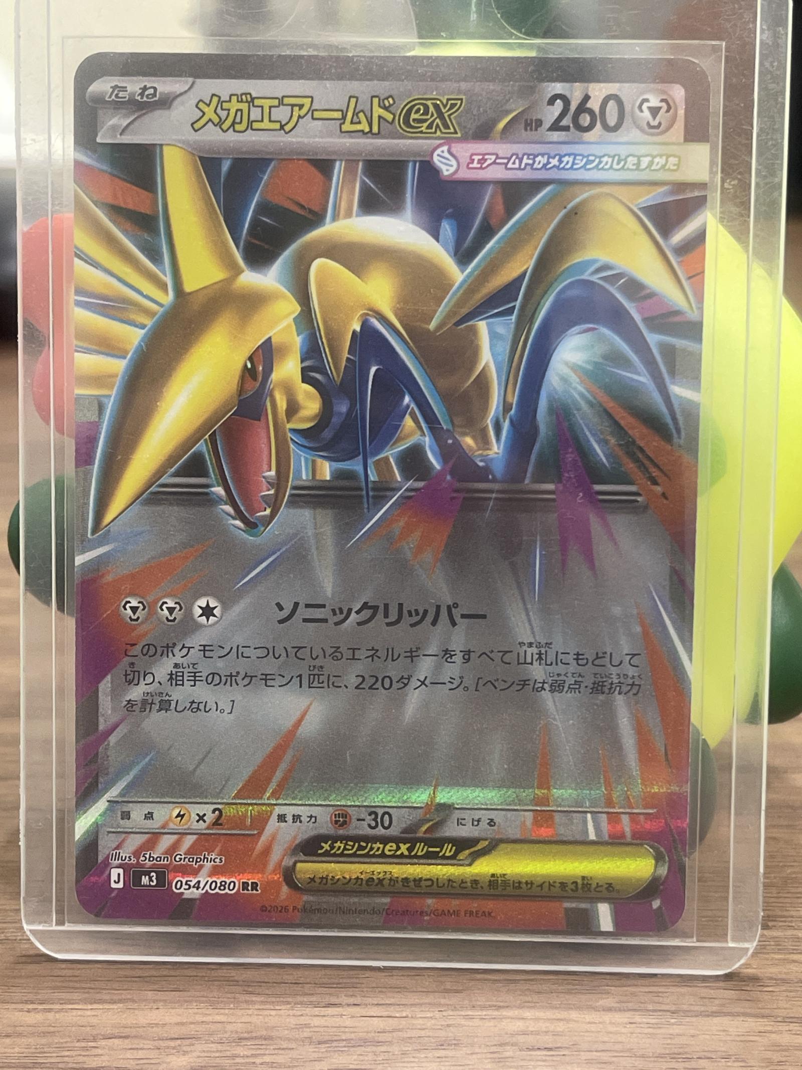 Mega Skarmory ex from the set code M3, card number 54/80, illustrated by 5ban Graphics. This card is a rainbow rare (RR) foil card in Japanese. It features a powerful attack dealing 220 damage and is playable in the meta. A collectible card from the 2026 Pokemon TCG series.