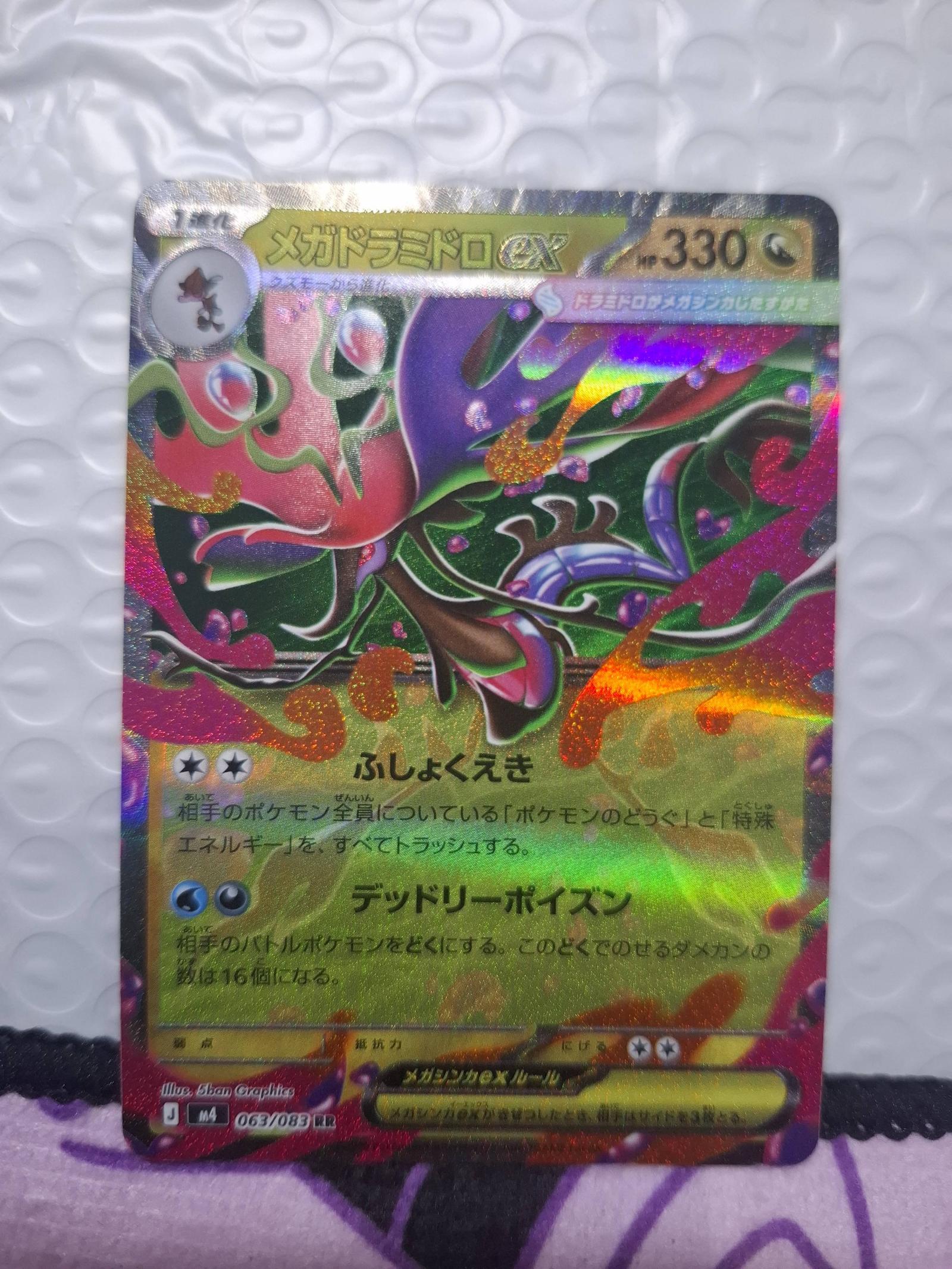Japanese Mega Drapion EX card from the set with code M4, card number 63/83 RR, illustrated by 5ban Graphics. This holo rare card features a foil treatment and is part of the Japanese Pokémon TCG. Suitable mainly for collectors or players interested in Japanese cards.