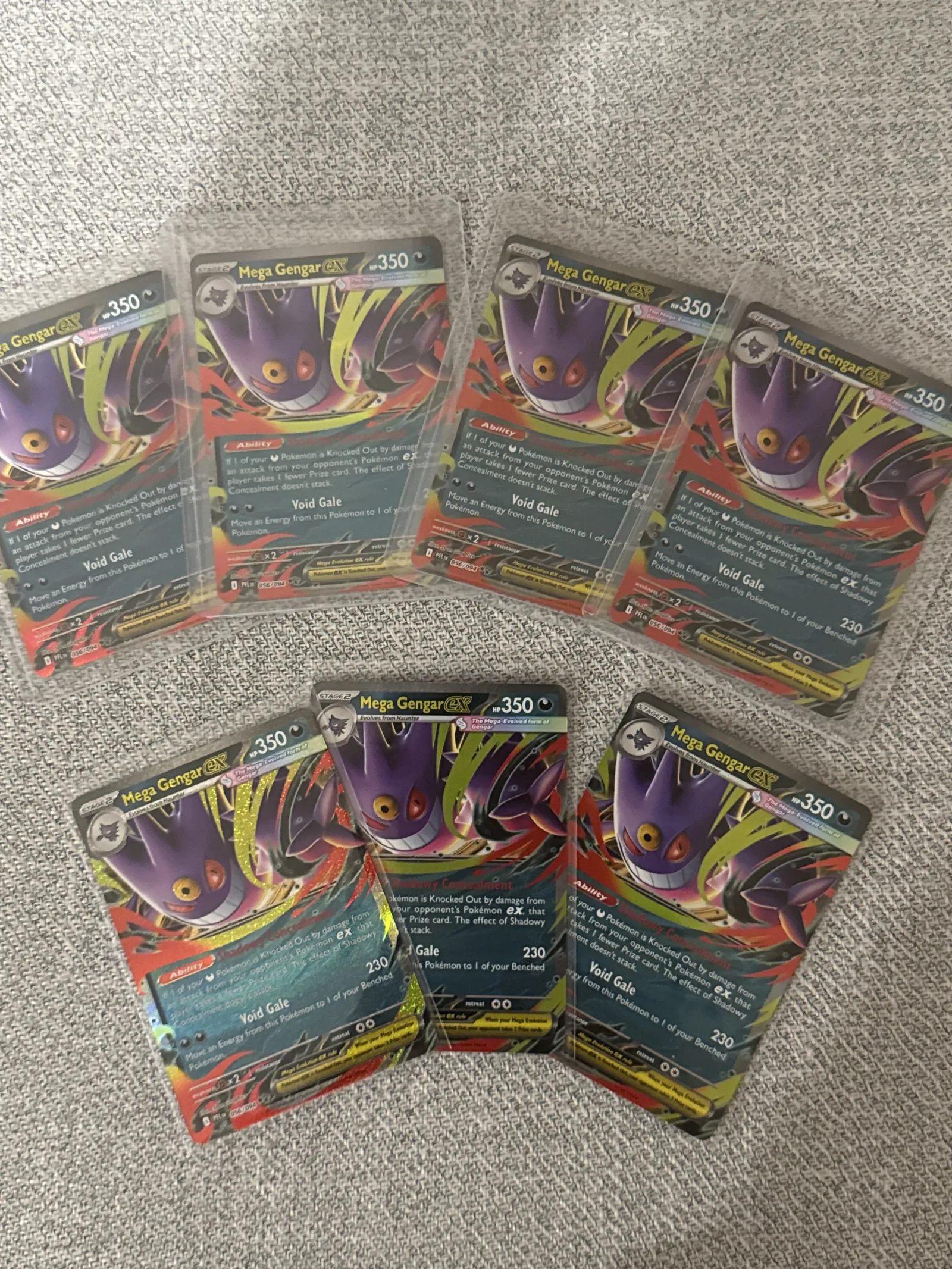 Mega Gengar EX card number 350 from a Pokemon TCG set. This card features a full art design, making it visually striking and collectible. The card includes the ability 'Shadow Tag' and the attack 'Void Gale' with 230 damage. This card is playable in the meta with strong utility and attack power. The card is foil with a shiny holographic finish. Specific artist and set code details are not visible. The card is in a protective sleeve.