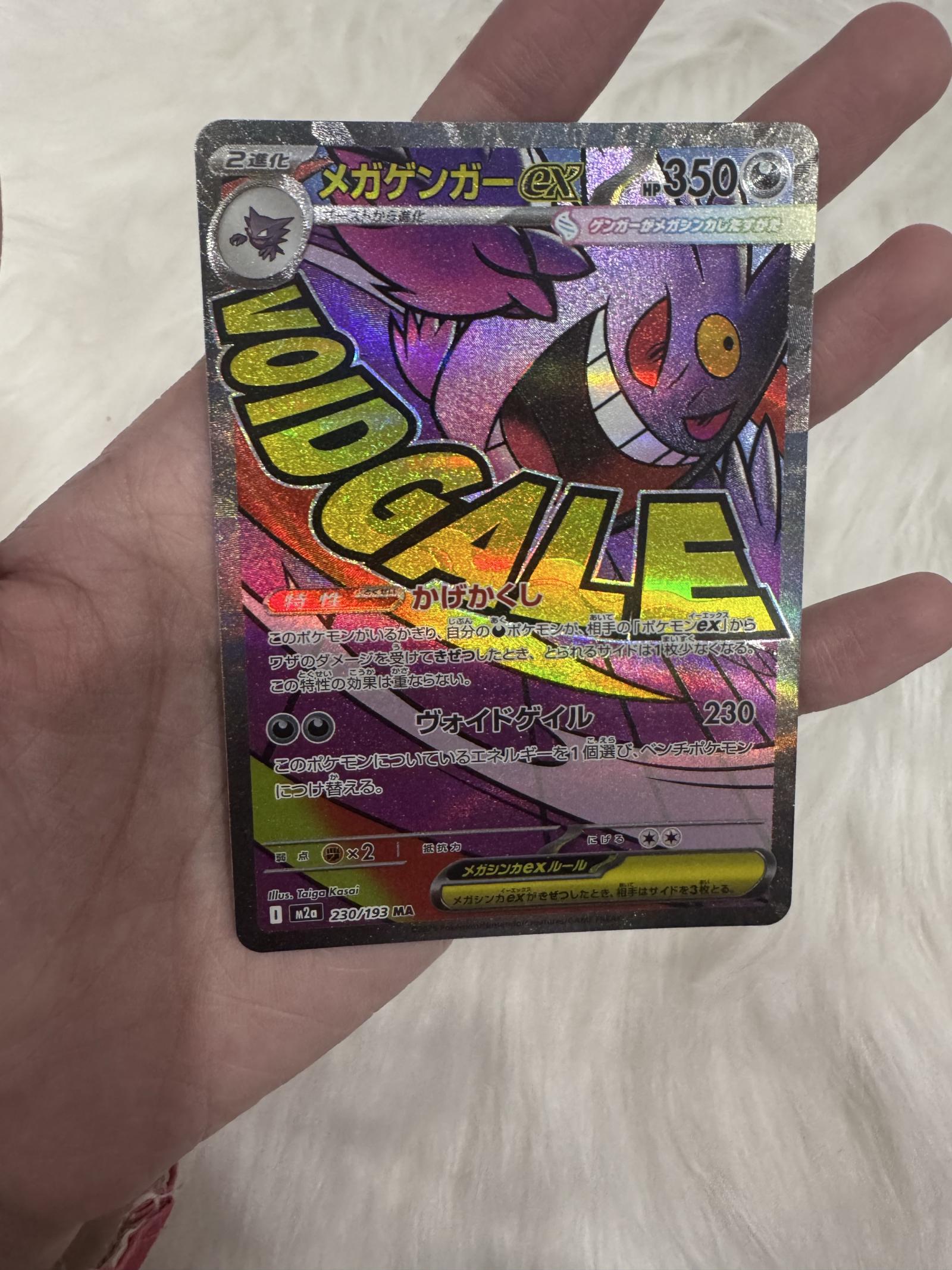 Mega Gengar ex card from the Pokemon M2a set, card number 230/193. Illustrated by Taiga Kosai. This is a Japanese language card and a secret rare foil full art printing. The card is collectible and features strong in-game potential within its meta when legal.