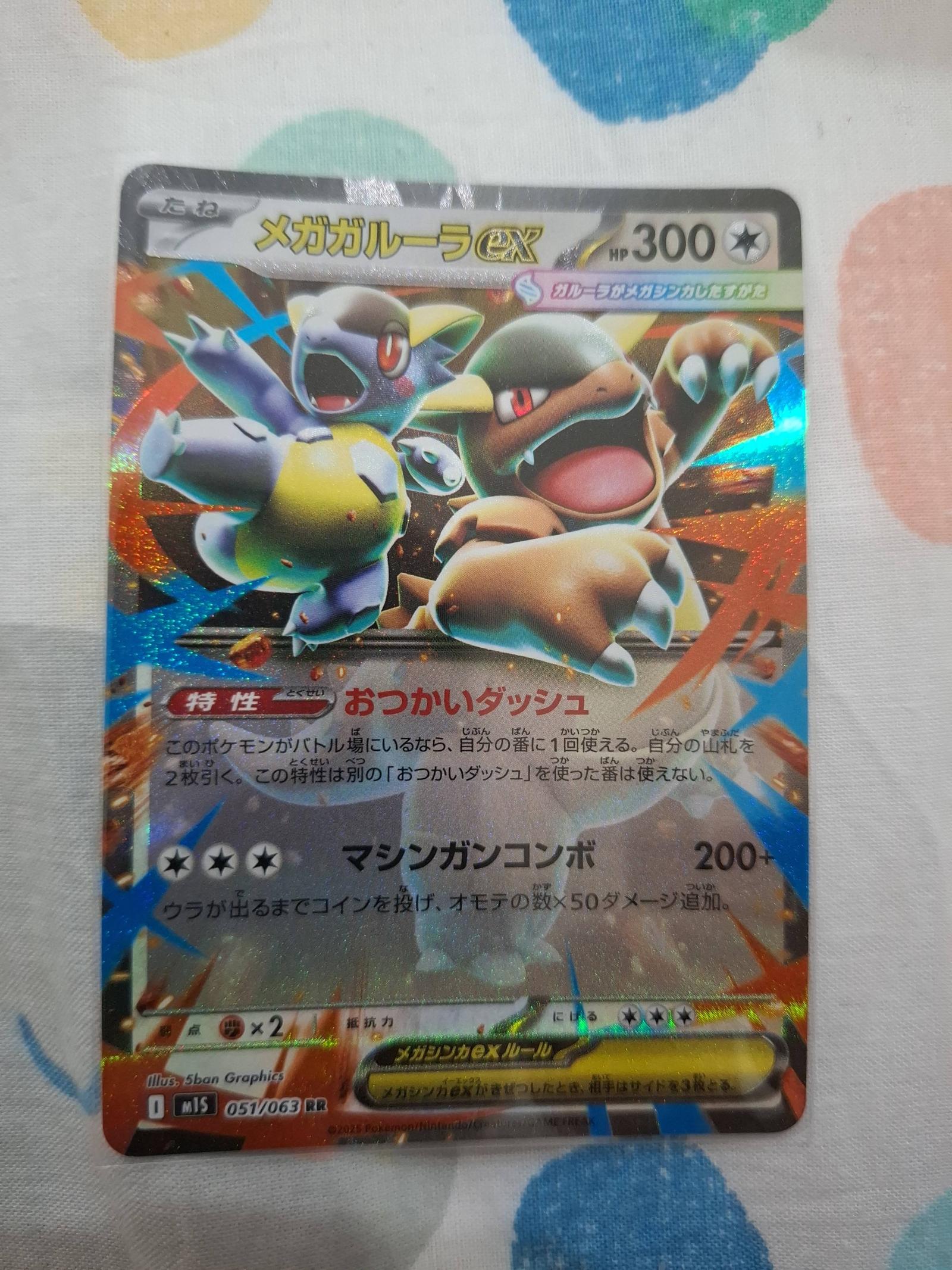 Mega Kangaskhan ex from the EX Delta Species set, card number 051/063. Japanese language. Illustrated by 5ban Graphics. This is a holo rare card featuring the Mega Evolution of Kangaskhan. The card is collectible and was part of the EX Delta Species set released in 2005. It is foil and has good playability potential.