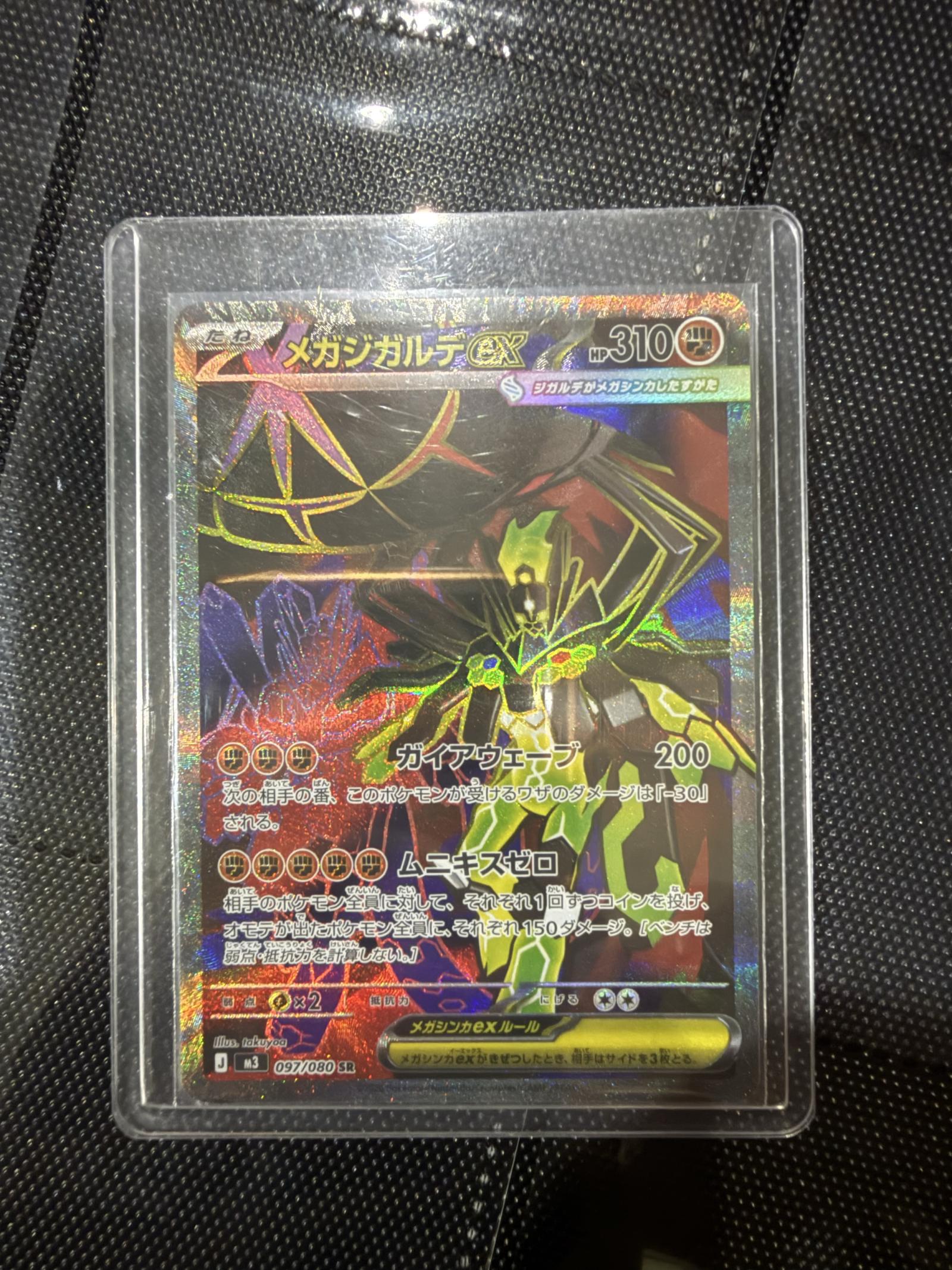 Japanese Mega Zygarde EX (メガジガルデEX) card, collector number 97/080, from XY Trainer Kit M3 set. Card code 024/XY-P. Illustrated by 5ban Graphics. Secret Rare (SR) holographic card. Playable in competitive meta. A special collectible for fans of EX Pokemon cards.