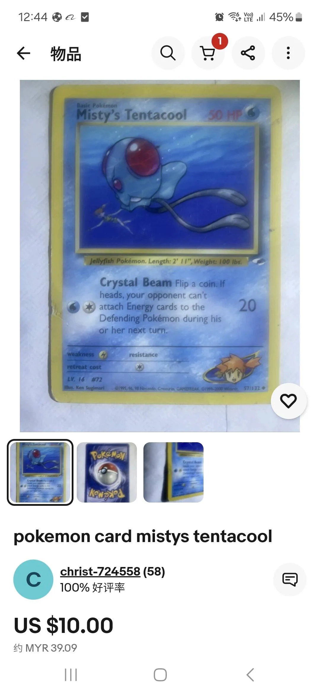 Misty's Tentacool 57/132 Team Rocket Pokémon TCG
