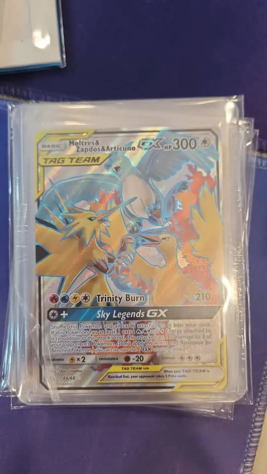 Notable features and collectibility: This is a full-art TAG TEAM GX from the Hidden Fates set, one of the set’s eye-catching ultra-rare/secret-style pieces. The full holographic treatment and dynamic artwork make it highly desirable to collectors and fans of Pokémon’s Legendary Birds. The card’s high HP and GX attack also made it a memorable card for casual play when GX decks were legal in their respective formats.