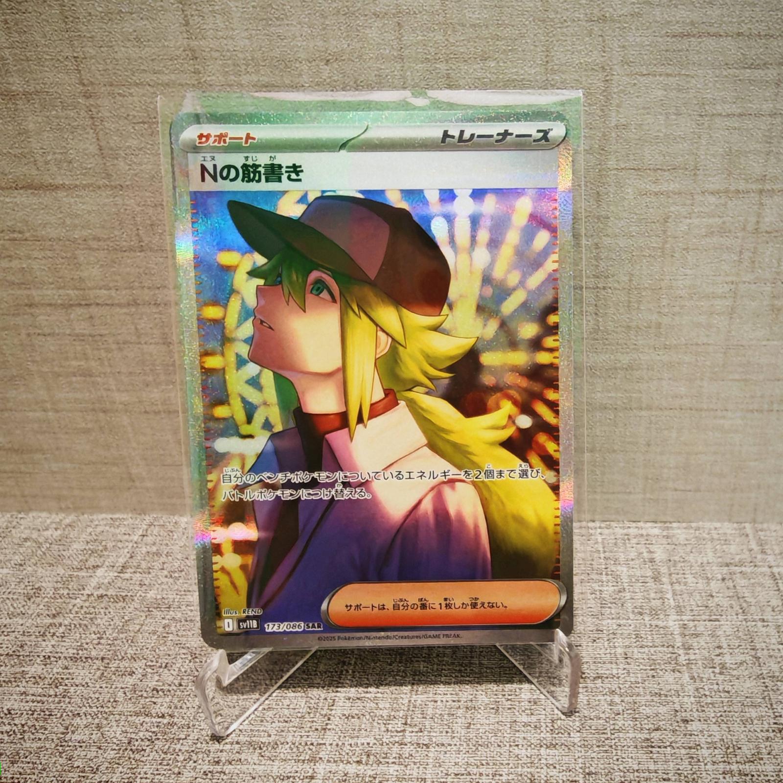 Notable features and value: This is a full-art secret/alternate rare (SAR) with popular N artwork by REND — highly collectible for fans of character art and full-art trainers. It is playable in the Pokémon TCG and can see casual or competitive use where Supporter choices matter, but much of its value comes from the artwork, holo finish, and relative scarcity as a secret-style full-art.