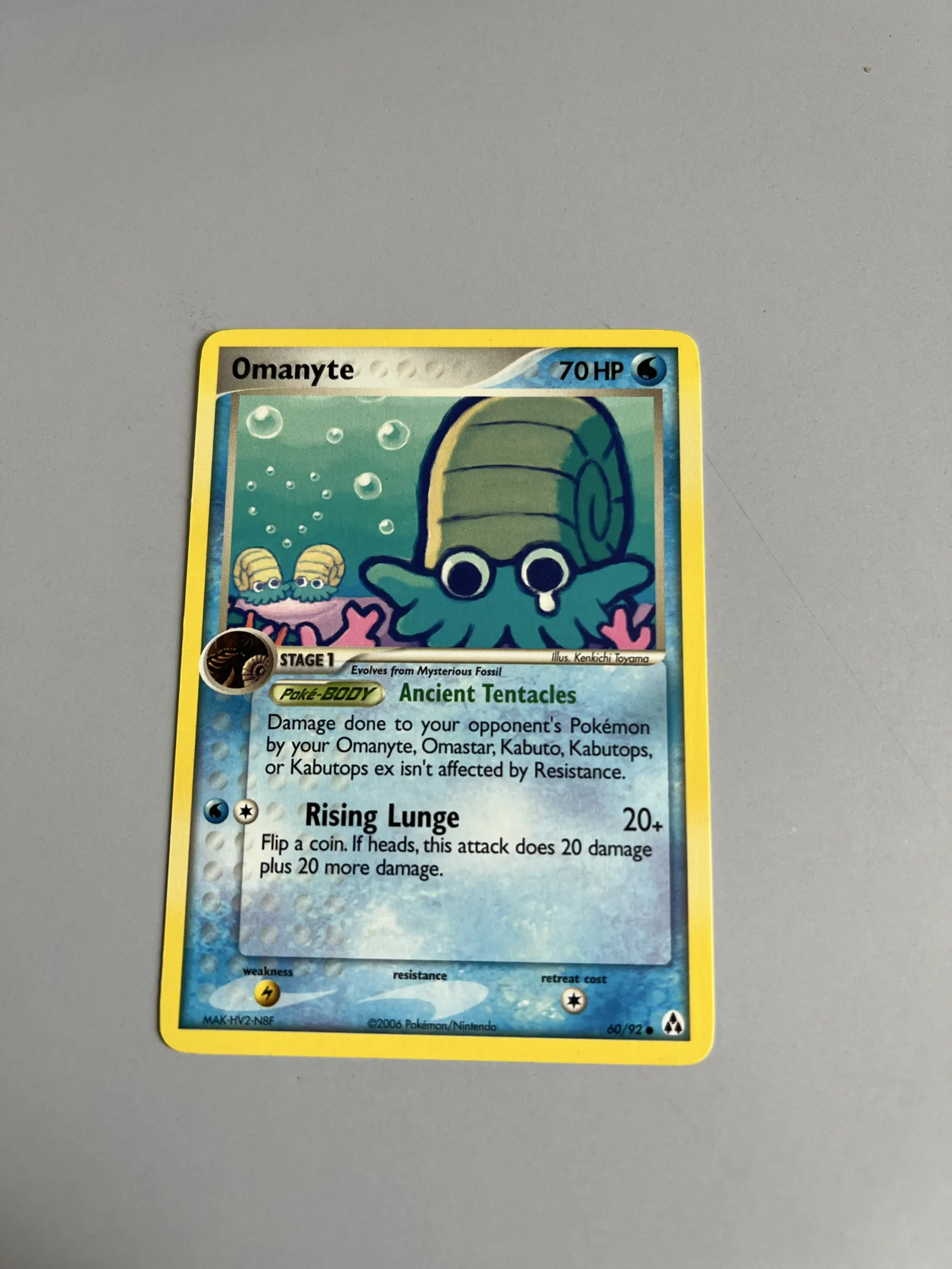 In this illustration, Omanyte is shown looking visibly upset and crying, with its small eyes teary and its expression clearly distressed.