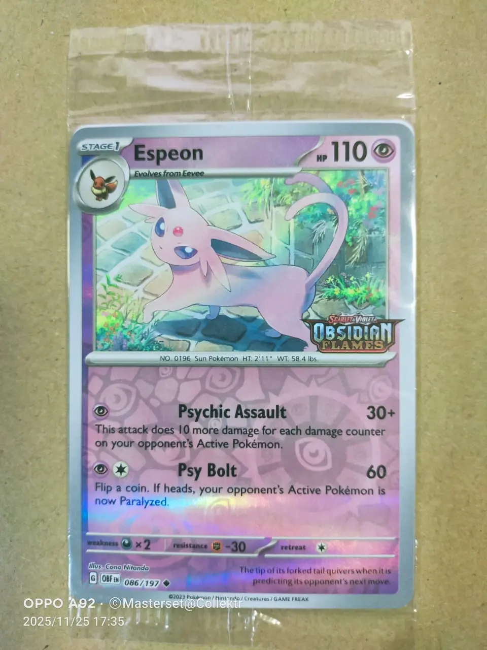(PAYDAY AUCTION) Obsidian Flames - 086/197 Espeon (Best Buy Stamped - Sealed) (Reverse Holo)