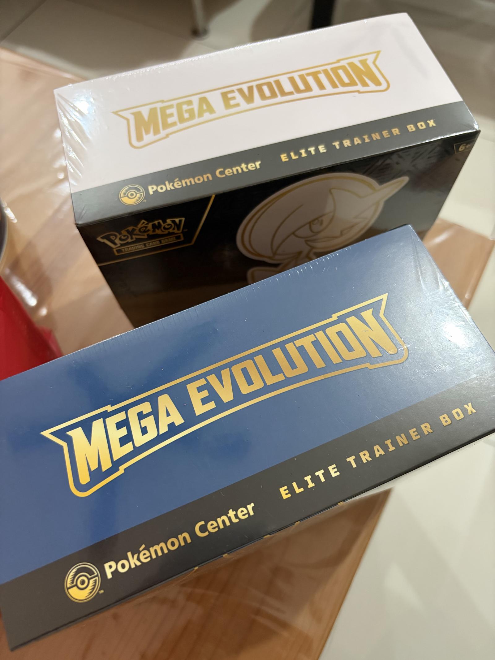 Notable features Official Pokémon Center release with exclusive Mega Evolution styling featuring Lucario (blue/gold art) and Gardevoir (white/gold art). This Elite Trainer Box was produced as a collector-focused Pokemon Center item and uses premium gold-accented artwork and packaging. Sealed presentation preserves whatever exclusive promos, sleeves, dice and accessories were included at manufacture.