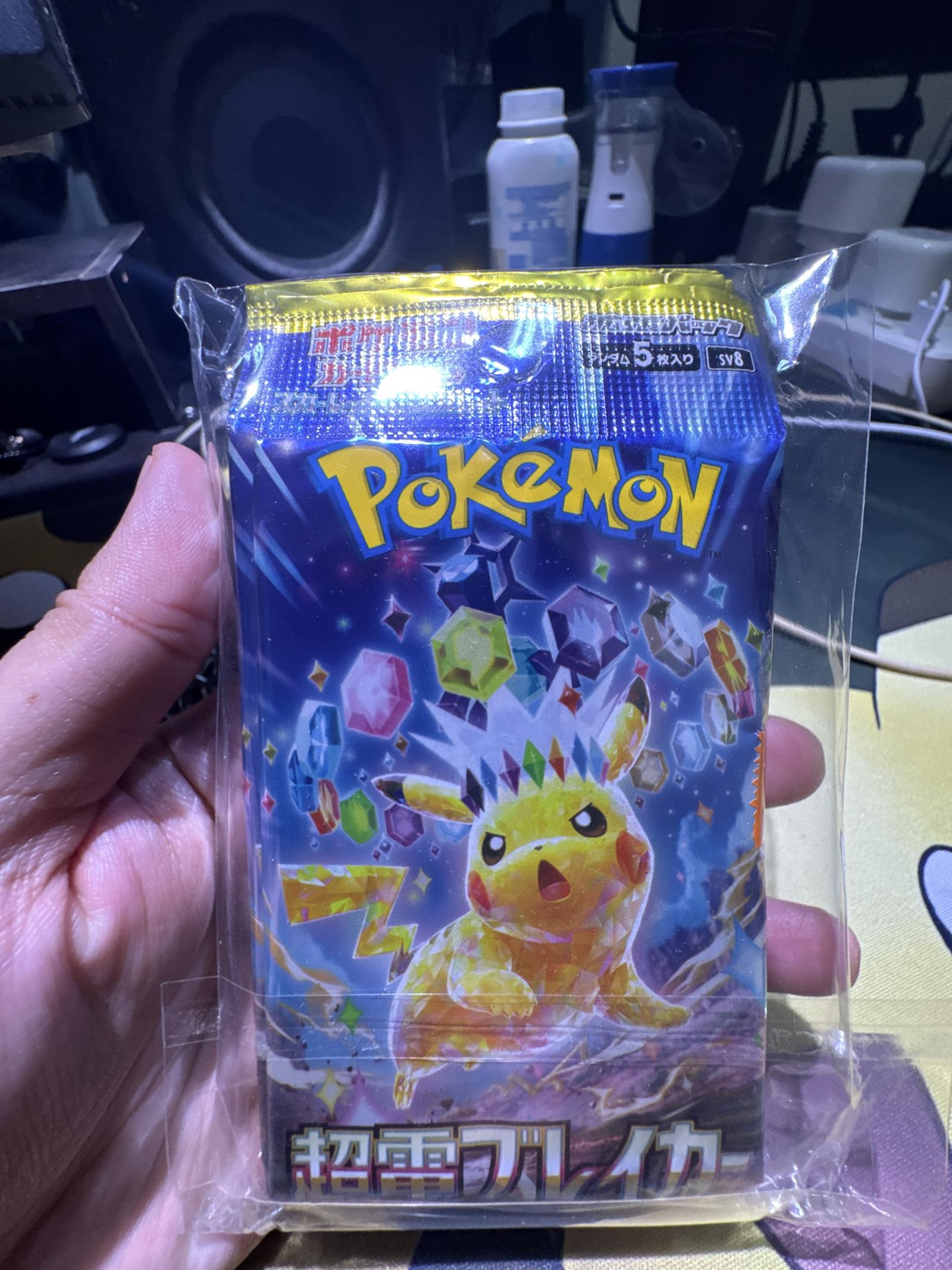 This is a Japanese booster pack from the Pokemon TCG set Super Value Pack SV8, featuring prism art Pikachu on the front. The pack contains 5 cards. It is unopened and sealed in plastic. The product is collectible and from a recent set release, popular for collectors and casual players.