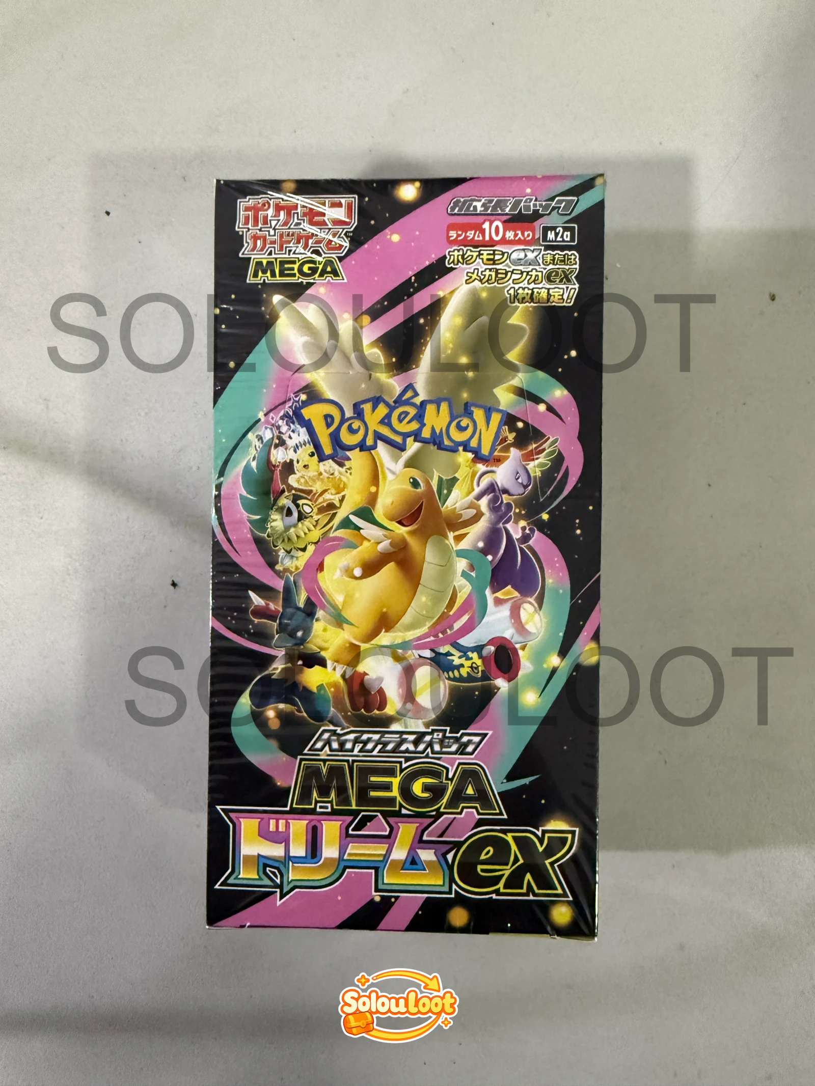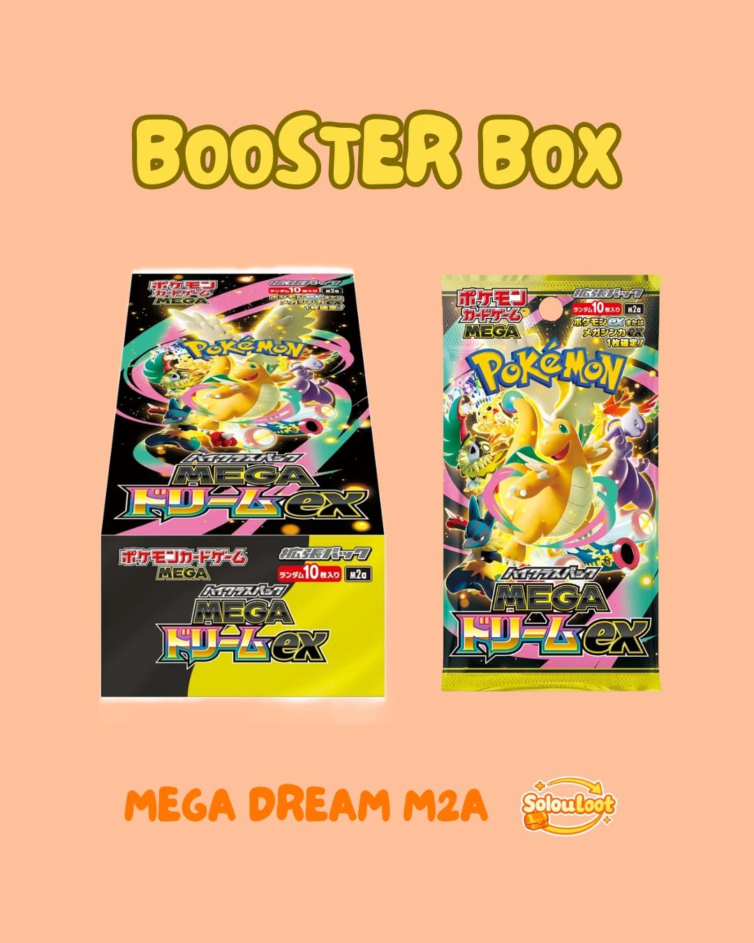 ITEM DETAILS Product: Mega Dream M2A Booster Box Format: Sealed Series: Japanese Pokémon TCG Featured Pokémon: Look out for Mega Charizard, Mega Gengar, and Dragonite!