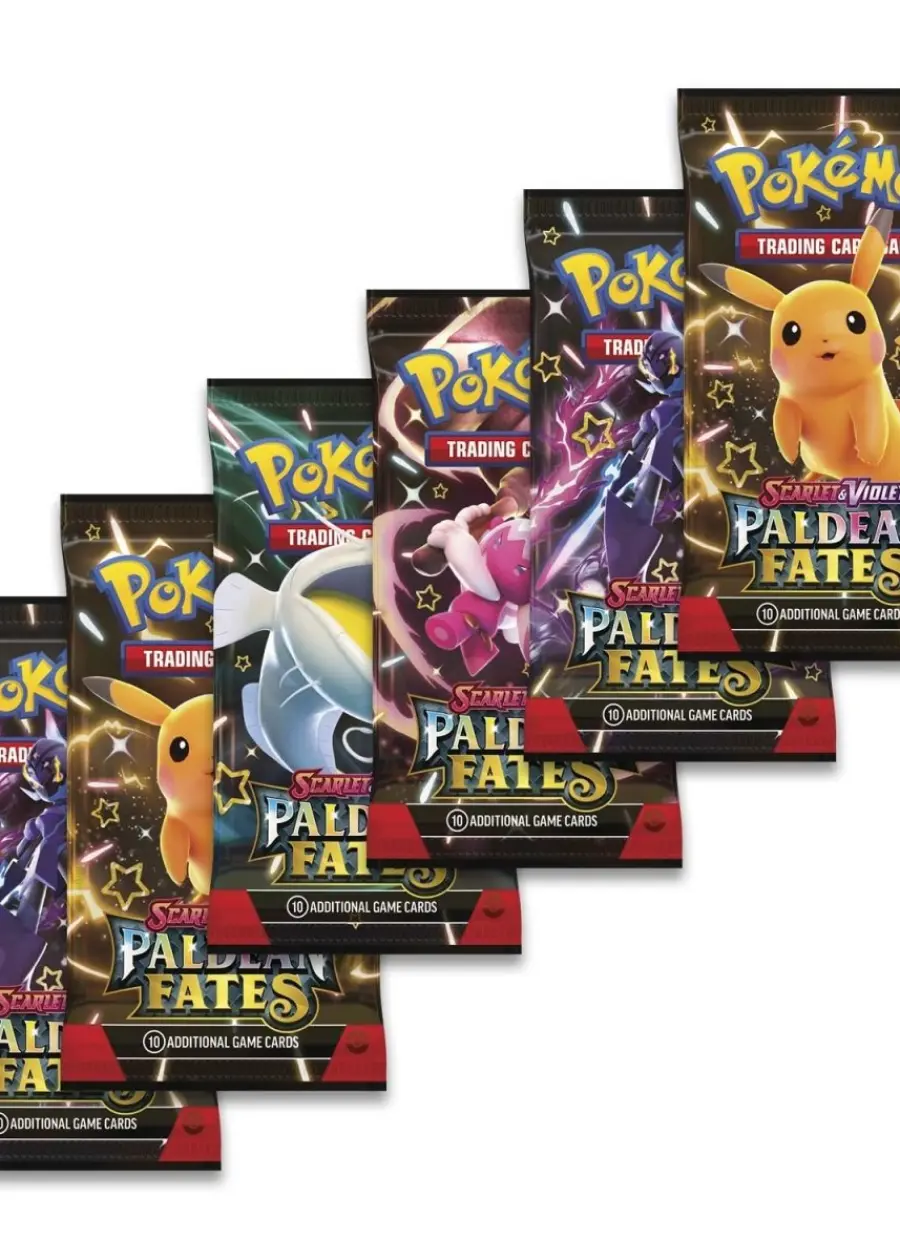 Includes six booster packs from the Pokémon TCG: Scarlet & Violet—Paldean Fates expansion