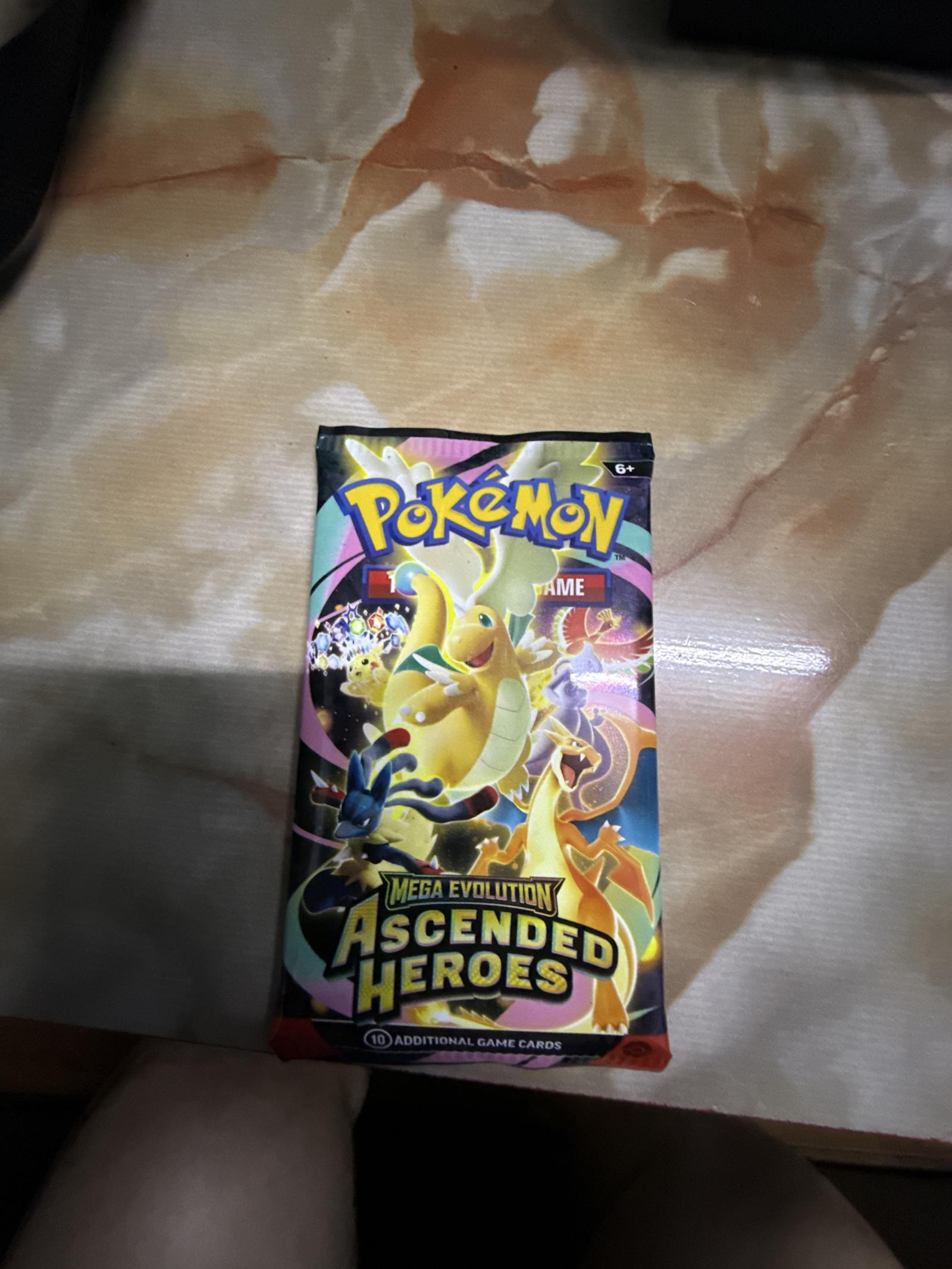 This is a booster pack from the Mega Evolution Ascended Heroes set of the Pokémon Trading Card Game. Each pack contains 10 additional game cards to expand your deck. Perfect for collectors and players looking to enhance their collection or gameplay. Language and card specifics vary per pack.