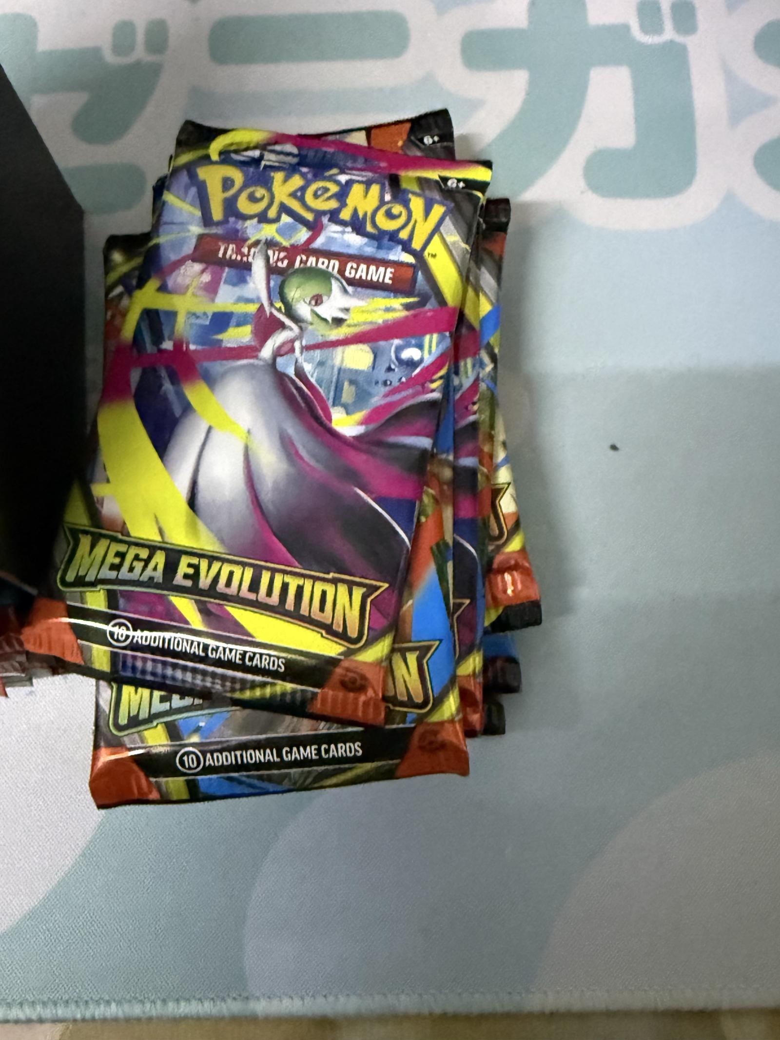 A booster pack from the Pokemon TCG Mega Evolution set, containing 10 additional game cards. This pack features artwork of Mega Gardevoir on the front. The set is known for introducing Mega Evolutions and powerful new cards, making it valuable for both collectors and players. Language and other specific details are not visible. The pack is unopened and contains random cards from the Mega Evolution set.