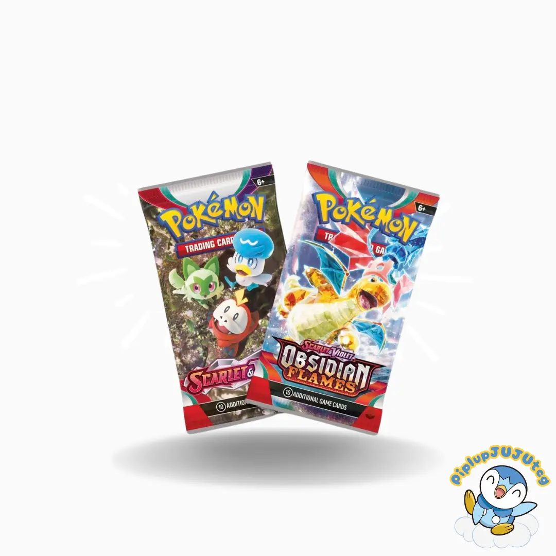 Expand your collection with three foil Pokémon TCG cards featuring Palafin, Baxcalibur, and Garganacl—plus a metallic coin, two Pokémon TCG booster packs, and a code card for Pokémon TCG Live!