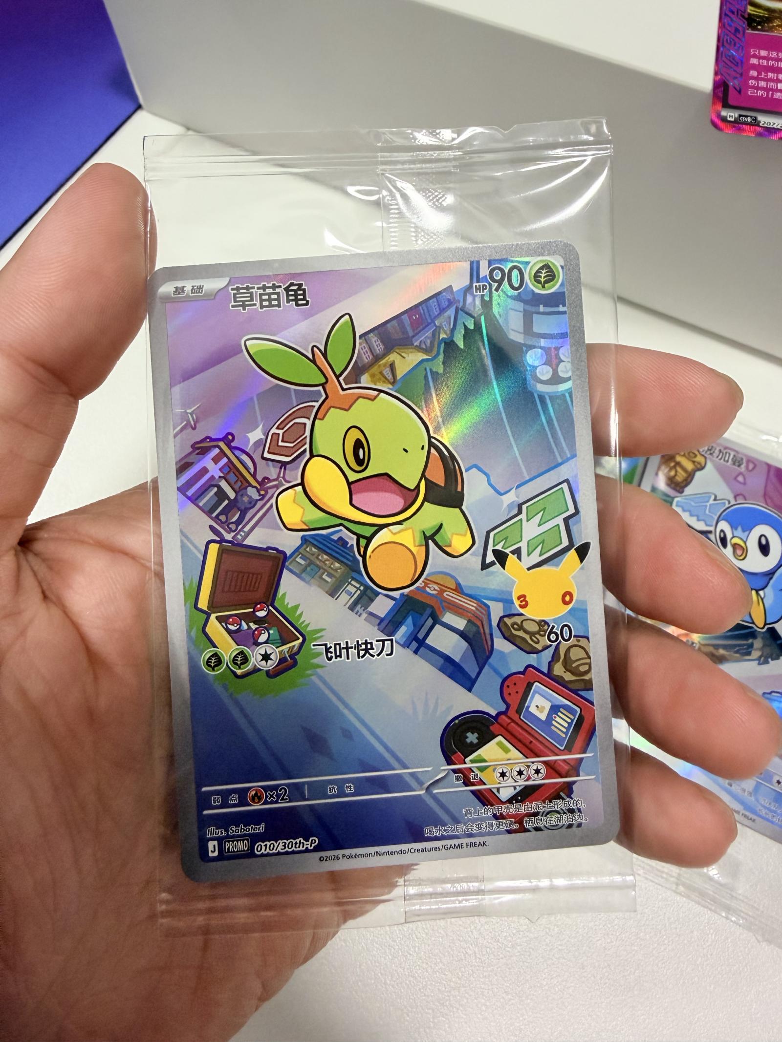 A Pokemon TCG promo card featuring Turtwig from the 30th Anniversary set, card number 010/30th-P. Illustrated by Sabotari. The card is in Chinese and has a holo foil treatment. This promo collectible highlights the 30th anniversary of Pokémon and is a special edition card, making it valuable for collectors. Playability in meta depends on format and rules but primarily it serves as a collectible.
