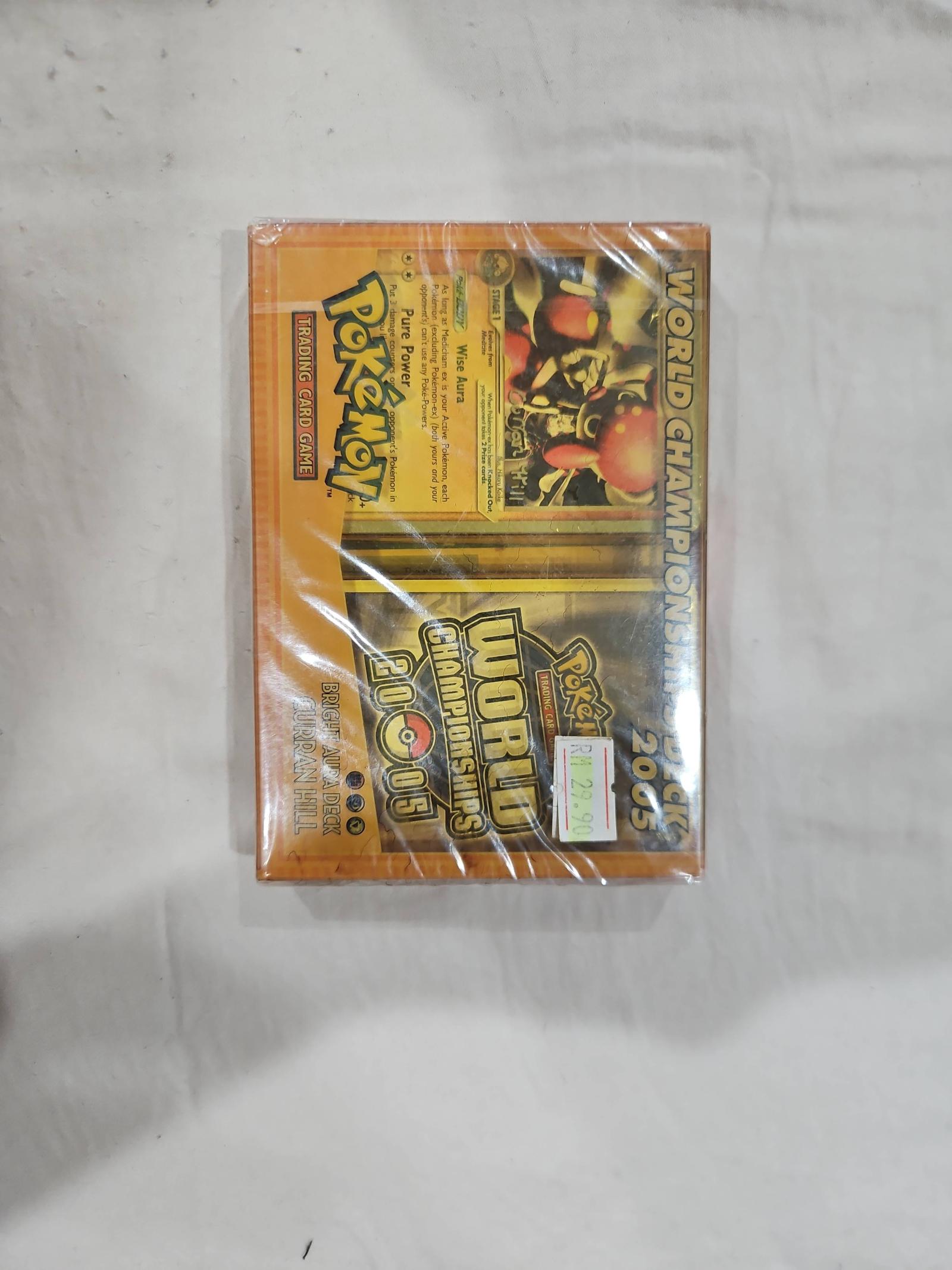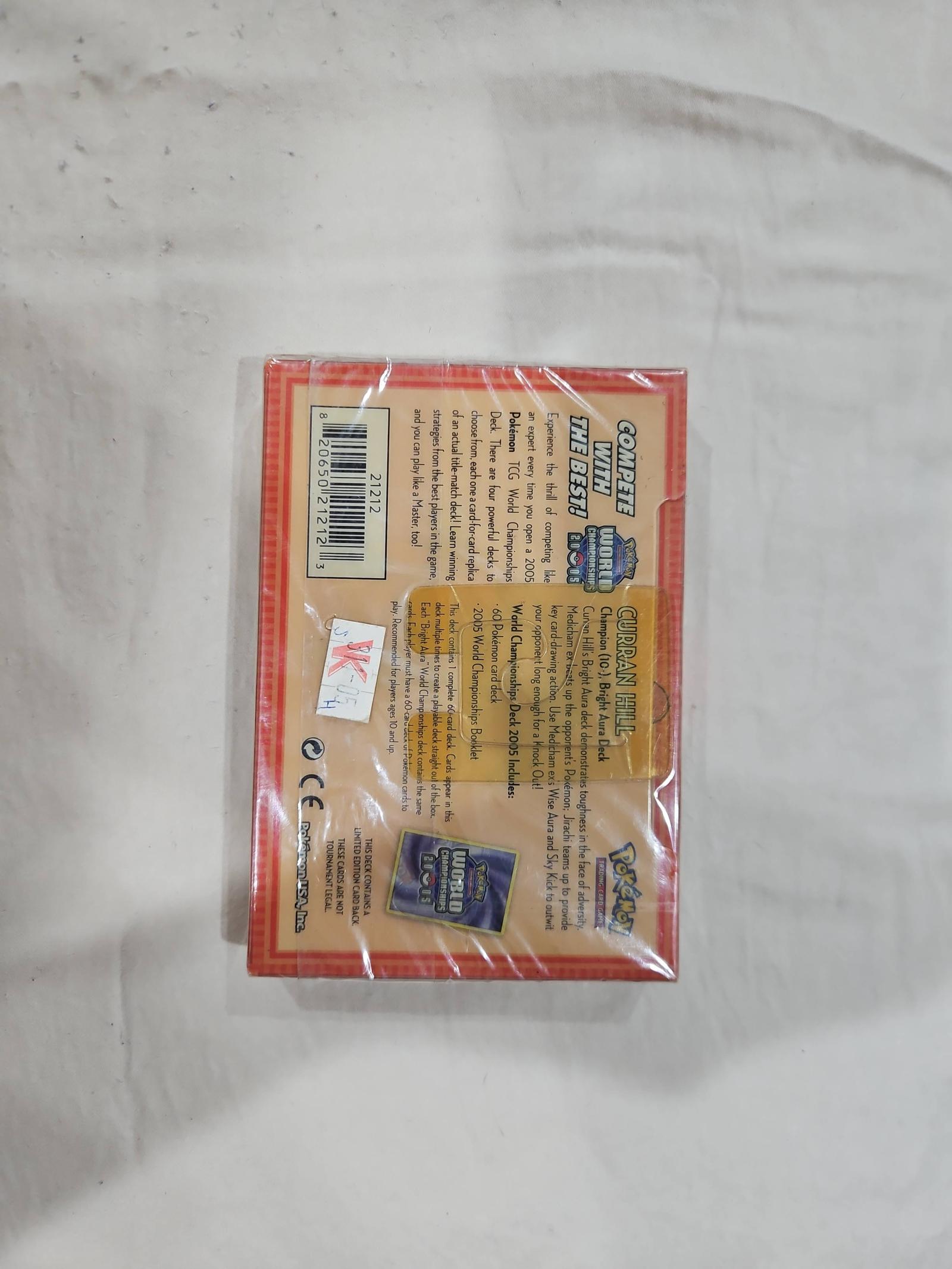 This is a sealed Pokemon Trading Card Game World Championships 2005 Bright Aura Deck. The deck includes cards used by Curran Hill in the 2005 World Championships. A collectible item for Pokemon TCG fans and collectors.