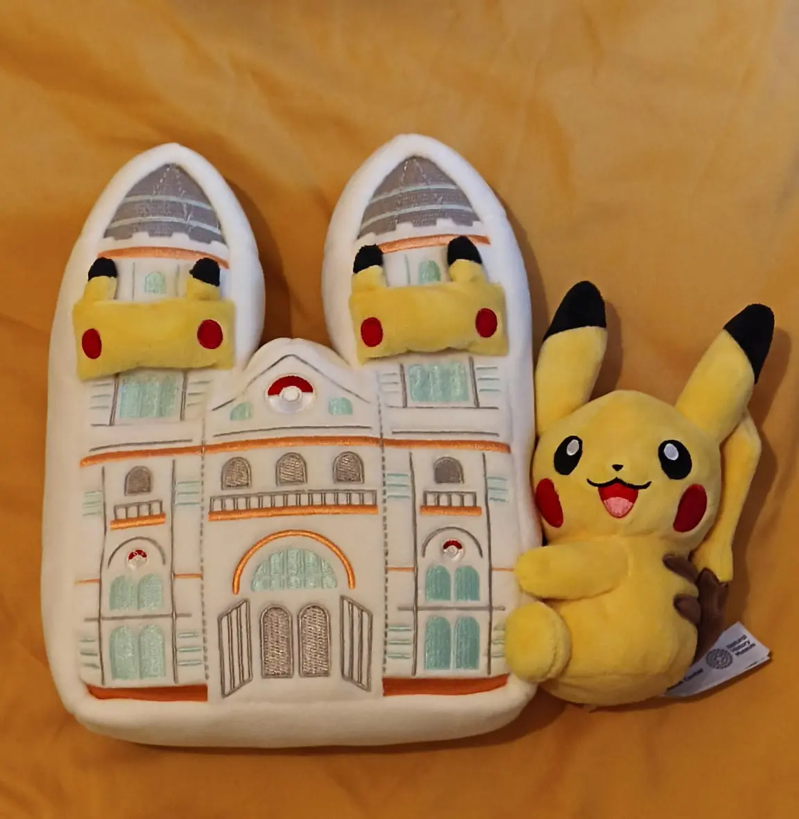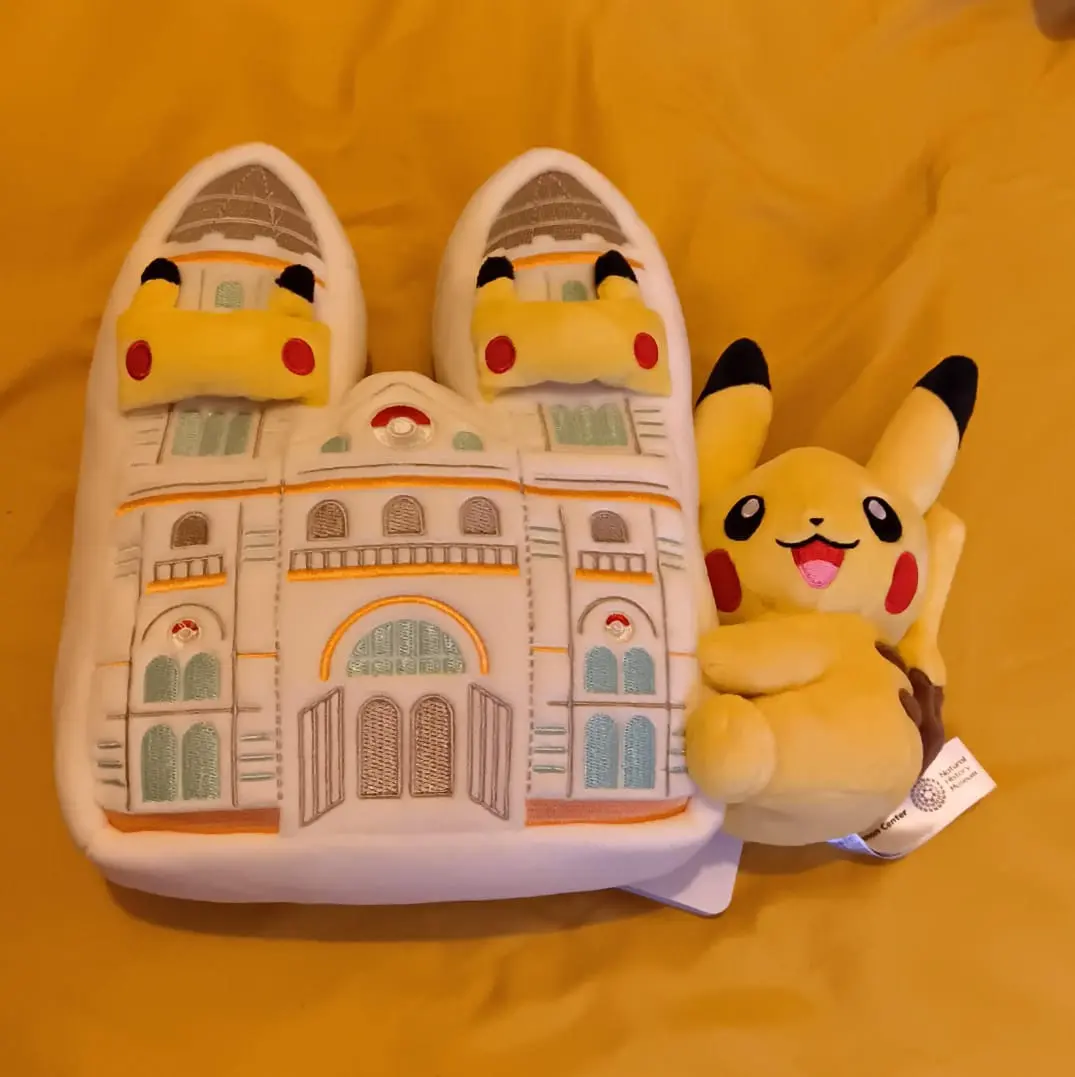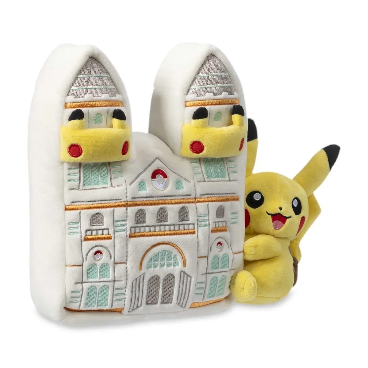 This special collaboration features Pikachu posed beside a beautifully detailed plush inspired by the iconic Natural History Museum façade. The museum design showcases embroidered architectural elements, soft pastel window accents, and signature Poké Ball motifs subtly woven into the structure, making it a unique display piece for collectors.