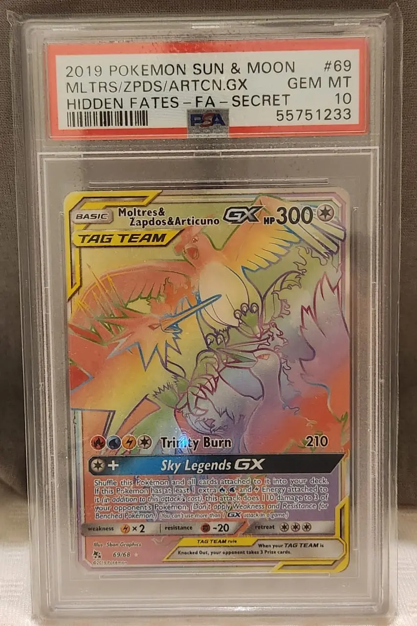 PSA 10 Moltres & Zapdos & Articuno-GX — Hidden Fates 69/68 (Full Art Secret Rare)