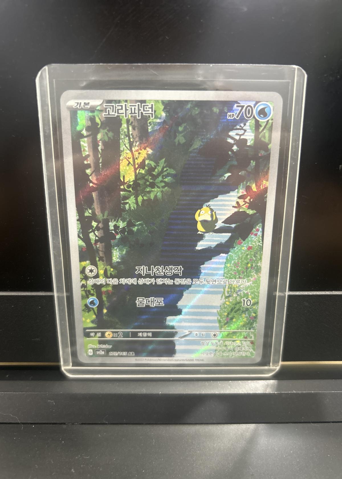 This is a Korean-language Psyduck Art Rare (AR) card from the Scarlet & Violet High Class Shiny Treasure ex set. Card number is 137/165 AR, illustrated by Mizue. Card code (if relevant): sv4a. The card features a beautiful full-art treatment. This card is generally collectible, but may see niche play in certain decks; it is a great addition for collectors due to its unique artwork and limited Korean print run. Not slabbed or graded.