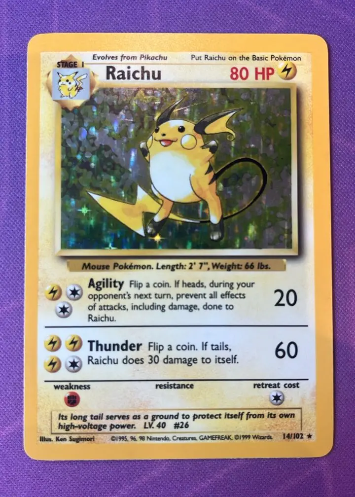 Raichu Unlimited Base Reverse Holo - 14/102