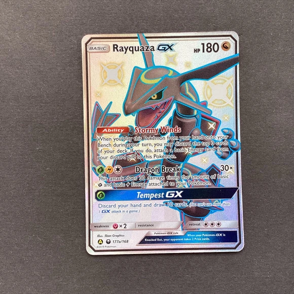 Rayquaza GX 177a/168 Shiny Shining Alternate Art Promo Sun Moon Celestial Storm Pokemon Card TCG Authentic Original