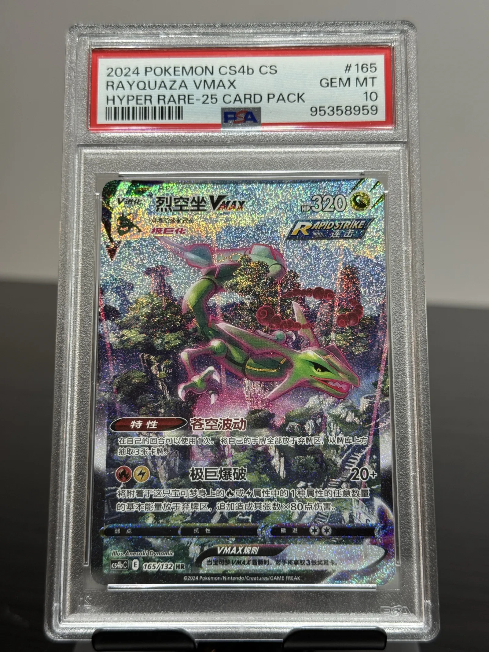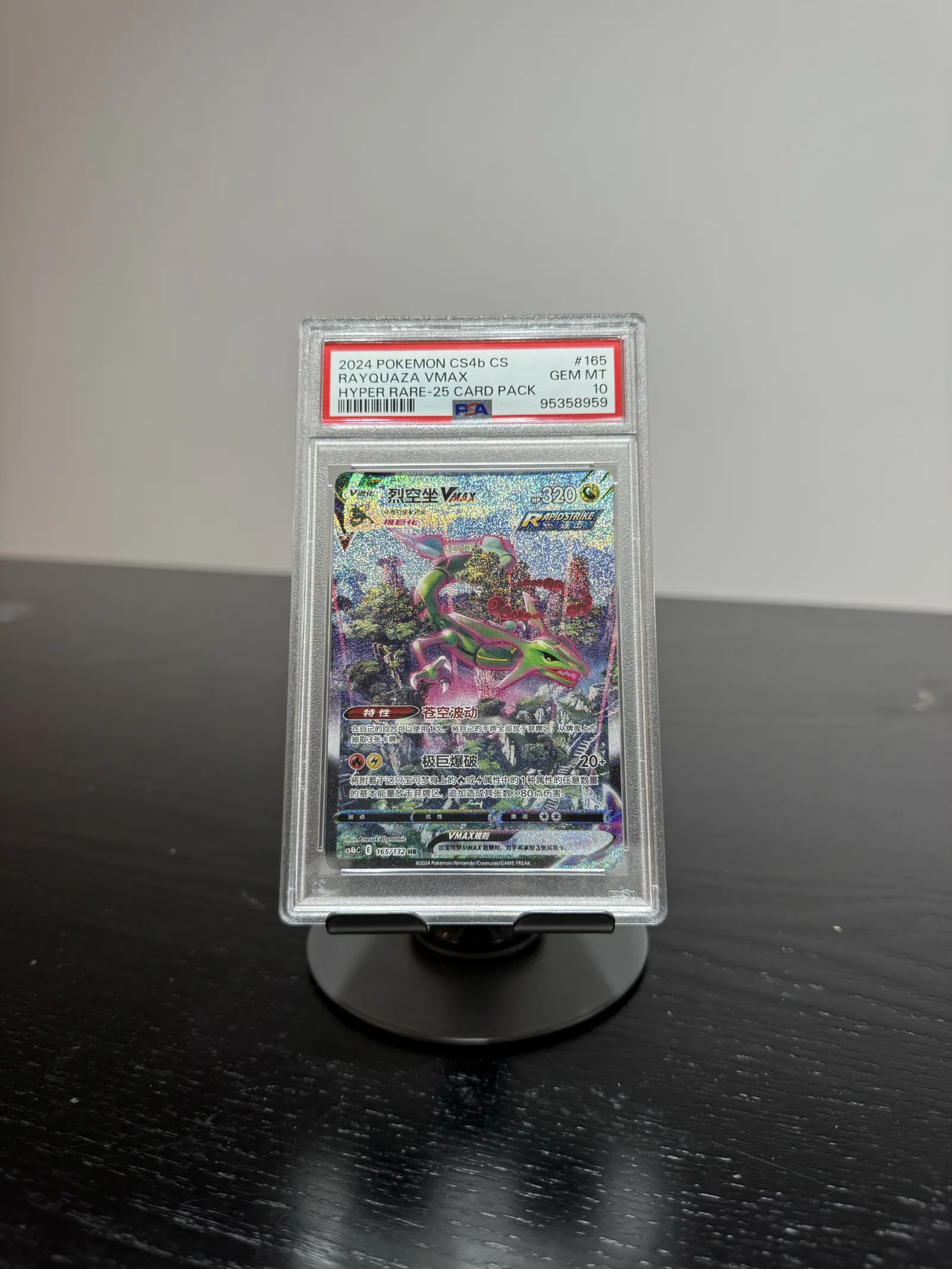 Rayquaza V 165/132 from Simplified Chinese set CS4bC, equivalent of Evolving Skies, in a PSA10.
