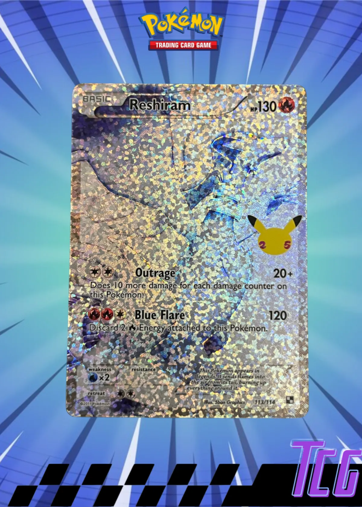 Reshiram 25th Anniversary Holo Rare Pokemon Card 113/114 - Raw Ungraded