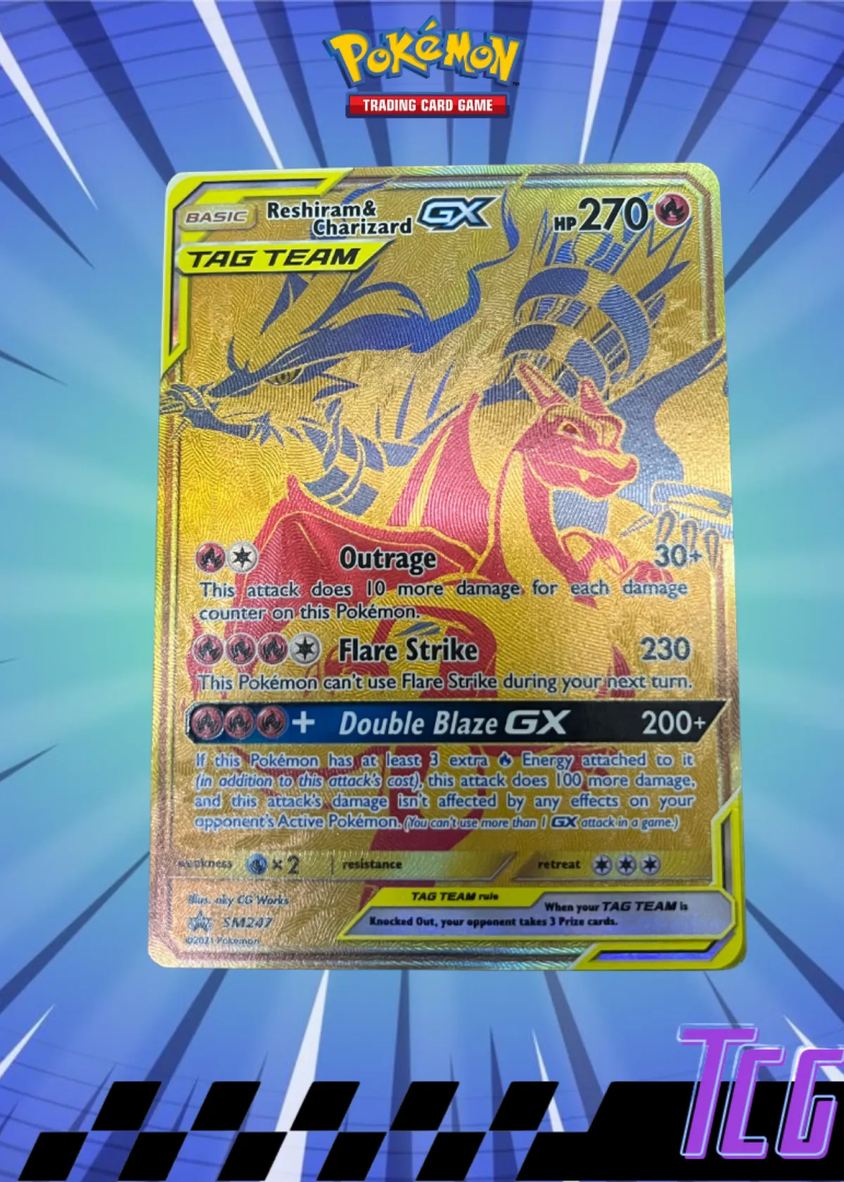 Reshiram & Charizard GX Full Art Gold Tag Team Pokémon Card SM247