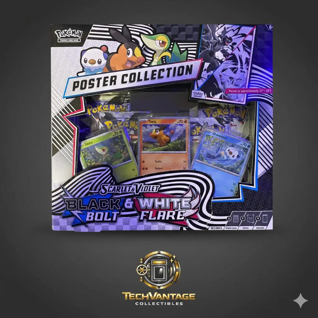 SCARLET VIOLET WHITE FLARE & BLACK BOLT POSTER COLLECTION WITH 3 PROMO 2 WHITE FLARE POKEMON TCG BOOSTER PACKS 2 BLACK BOLT POKEMON TCG BOOSTER PACKS