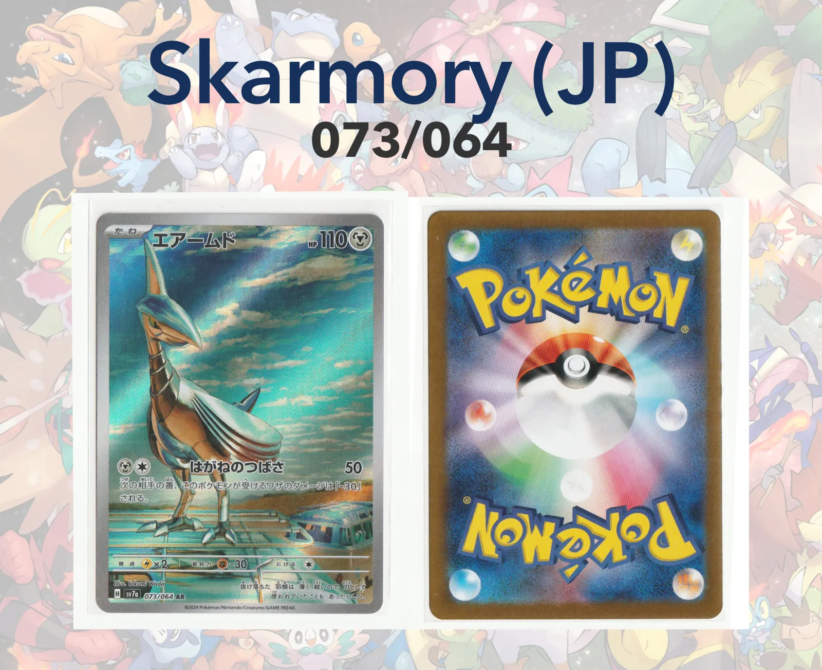 Name : Skarmory Series : Paradise Dragona Number : 073/064 Language : Japanese Rarity : Art Rare (AR) Condition : Near Mint (NM)