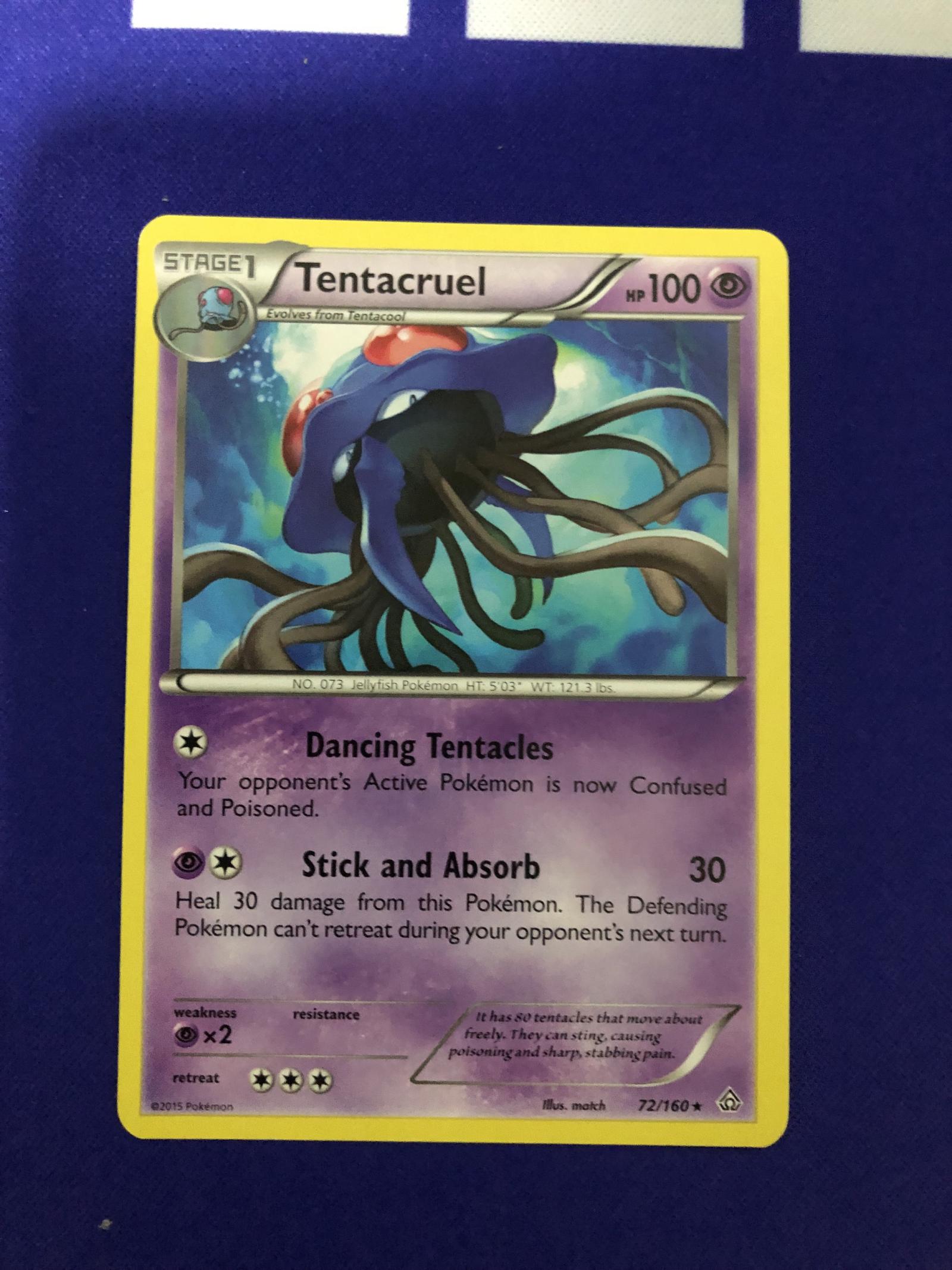 Tentacruel card from the XY Evolutions set (card code 72/160) illustrated by match. This is a Stage 1 Psychic type Pokémon with 100 HP. The card features moves Dancing Tentacles and Stick and Absorb. It is a normal print, not foil or holo. Suitable for collectors and playable in casual formats.