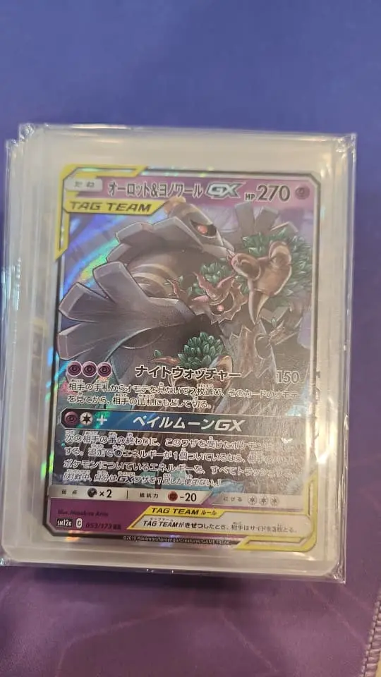Playability & collectible value: Playable in Japanese-format Pokémon TCG events and sought after by collectors who chase Tag Team GX full-art holo cards and Japanese printings. As an ungraded raw card, final market value will depend on centering, edge/corner sharpness, and surface condition — factors that would be confirmed by a professional grade or by closer inspection photos. This printing is notable to collectors who prefer original Japanese full-art TAG TEAM releases.