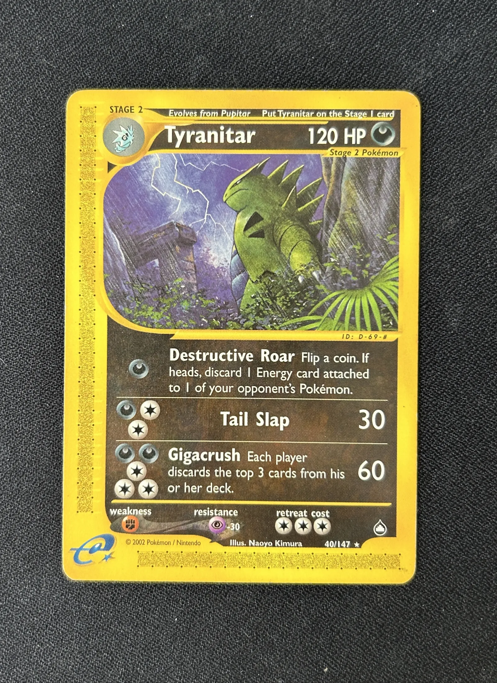 Tyranitar 40/147 Rare Aquapolis E-Series Pokemon Card TCG Vintage Authentic Original