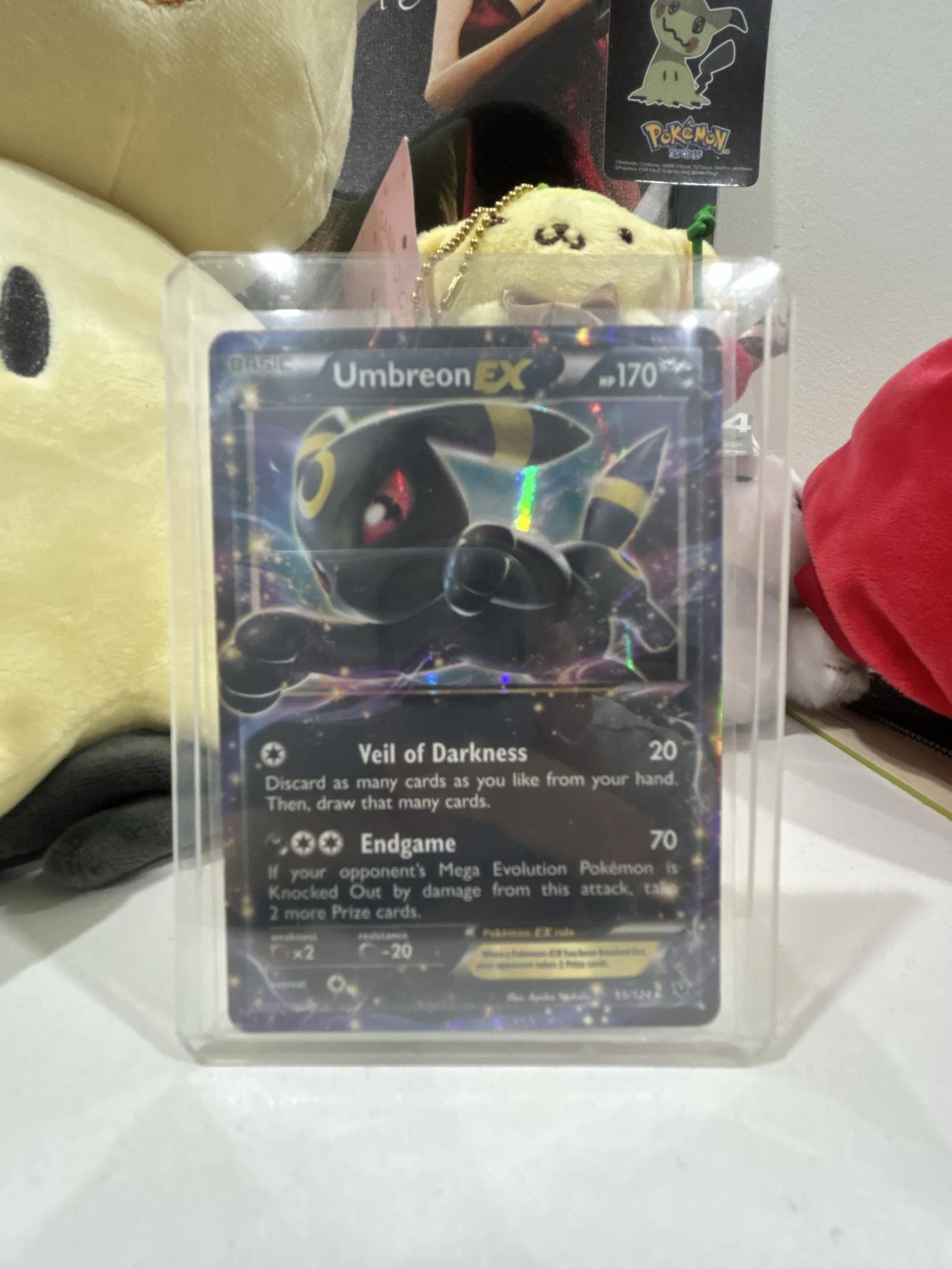 Umbreon EX holographic card from the Black Star Promo set (BSP 122) featuring 170 HP, Veil of Darkness, and Endgame attacks. Artist: Kyoko Umemoto. This card is holo foil and highly collectible, playable in Pokemon TCG meta during its era. Slight crease on top left back