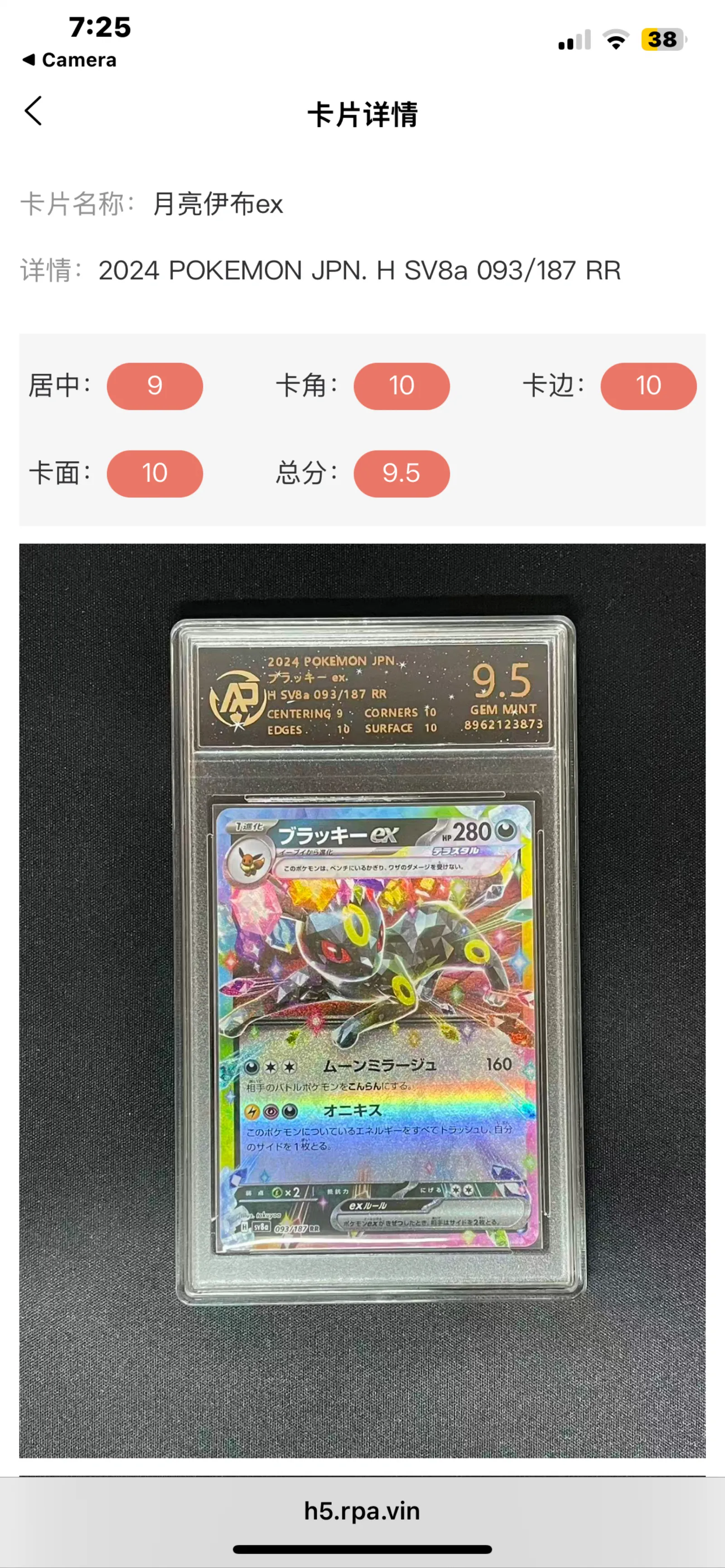 Umbreon ex X093/187 RPA 9.5 Gem Mint (Reverse Holo)