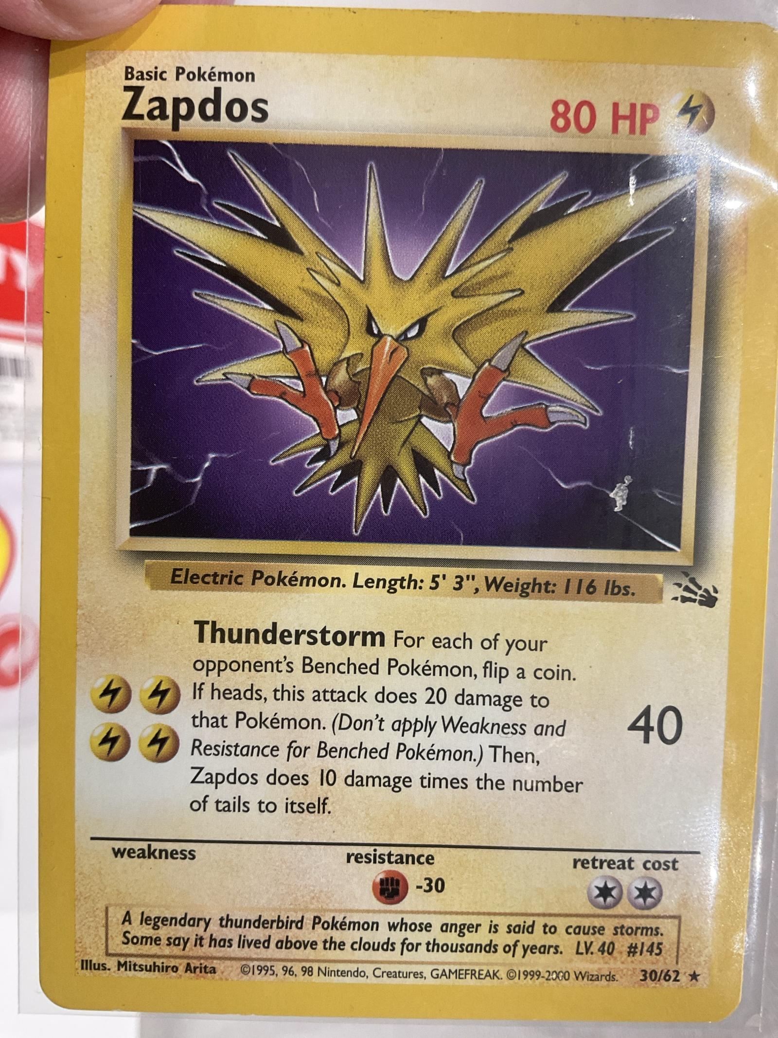Zapdos 30/62 Fossil Unlimited Set Legendary Electric Pokemon TCG Card