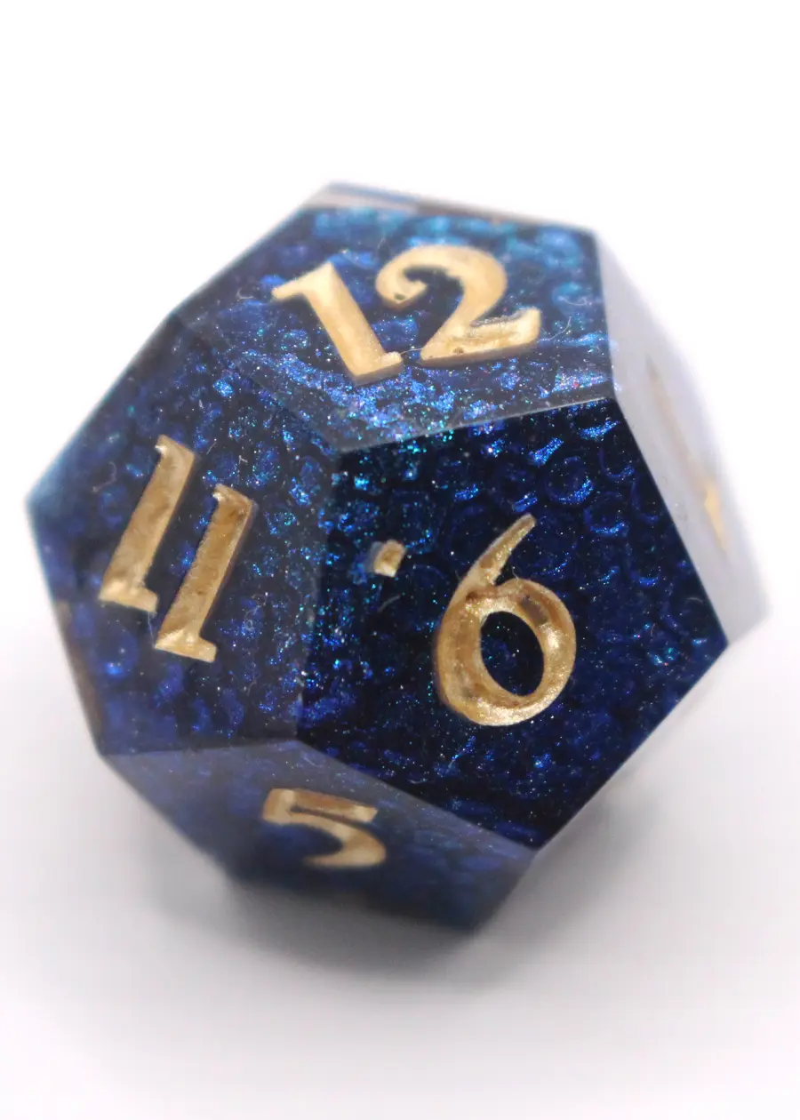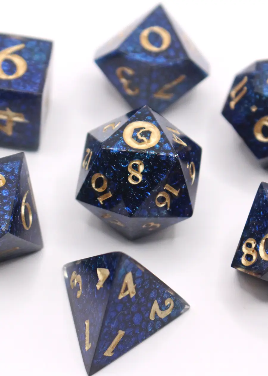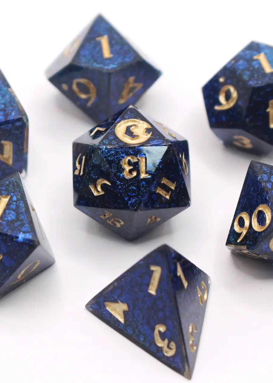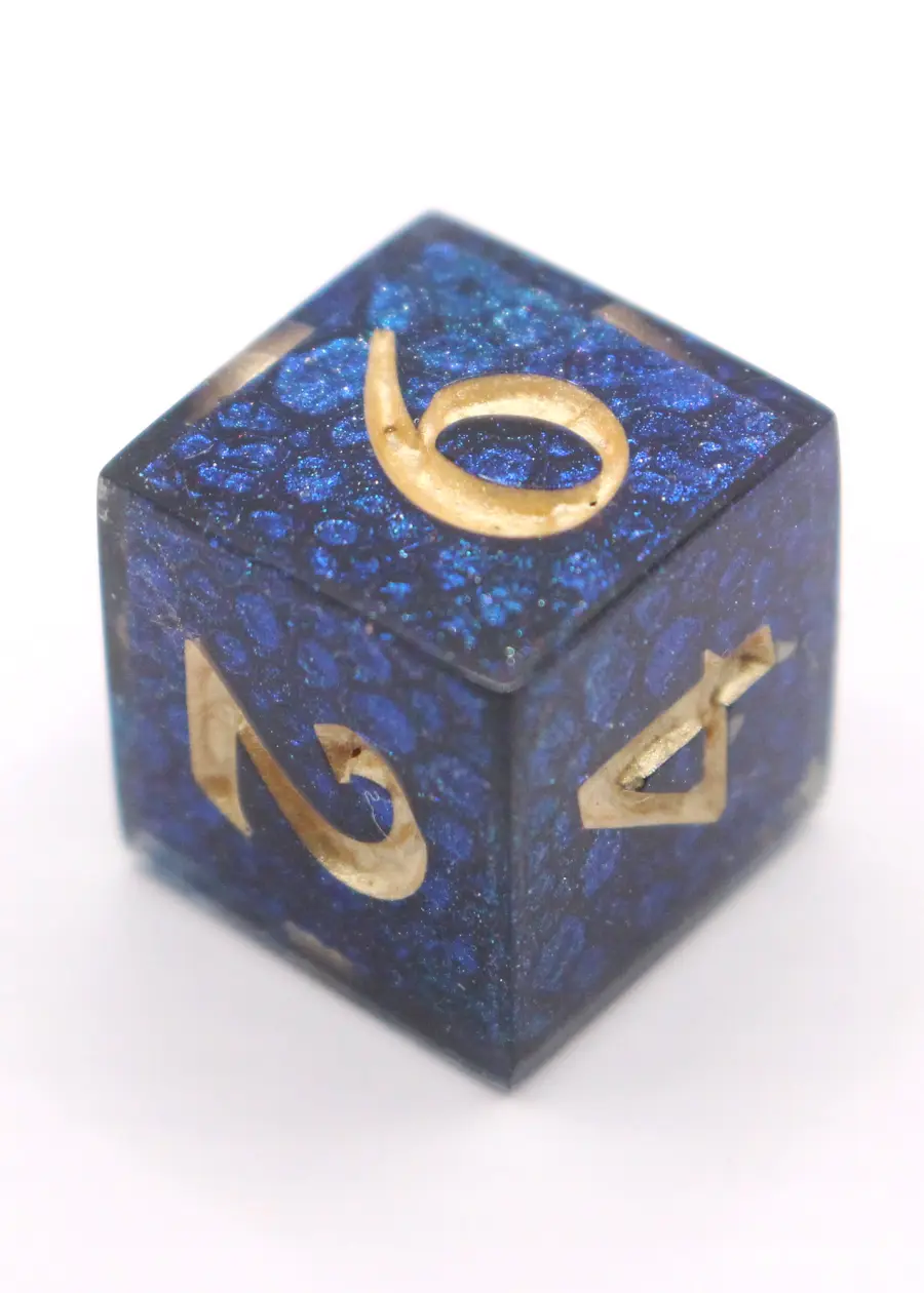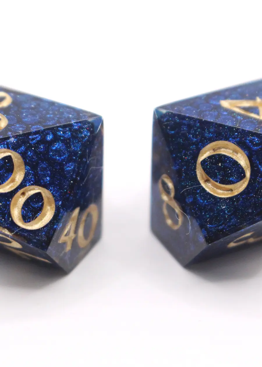 "Harness the crackling power of the storm with our Azure Bolts Dragonscale Dice Set, echoing the electrifying fury of blue dragons."