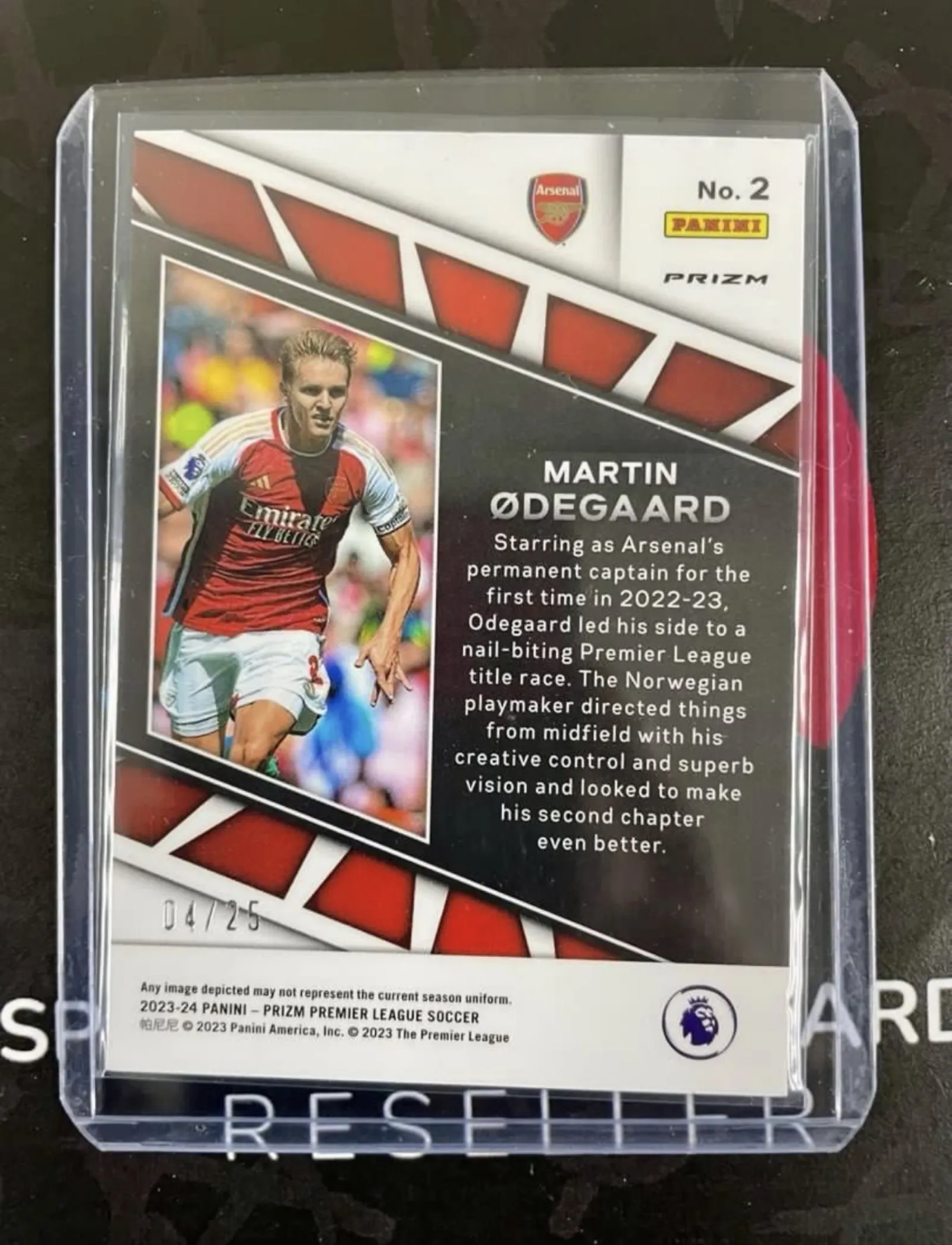 2023-24 Panini Prizm Premier League Insert Center Stage Martin Ødegaard No.2 — #04/25 (Arsenal)