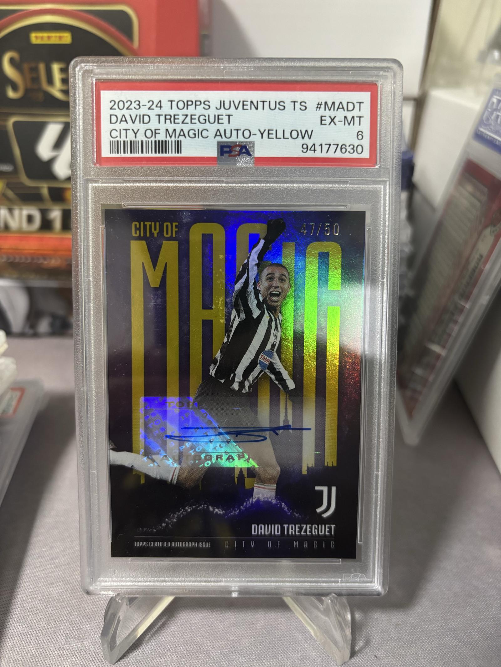 2023-24 Topps Juventus David Trezeguet City of Magic Auto /50 Yellow #MADT PSA 6