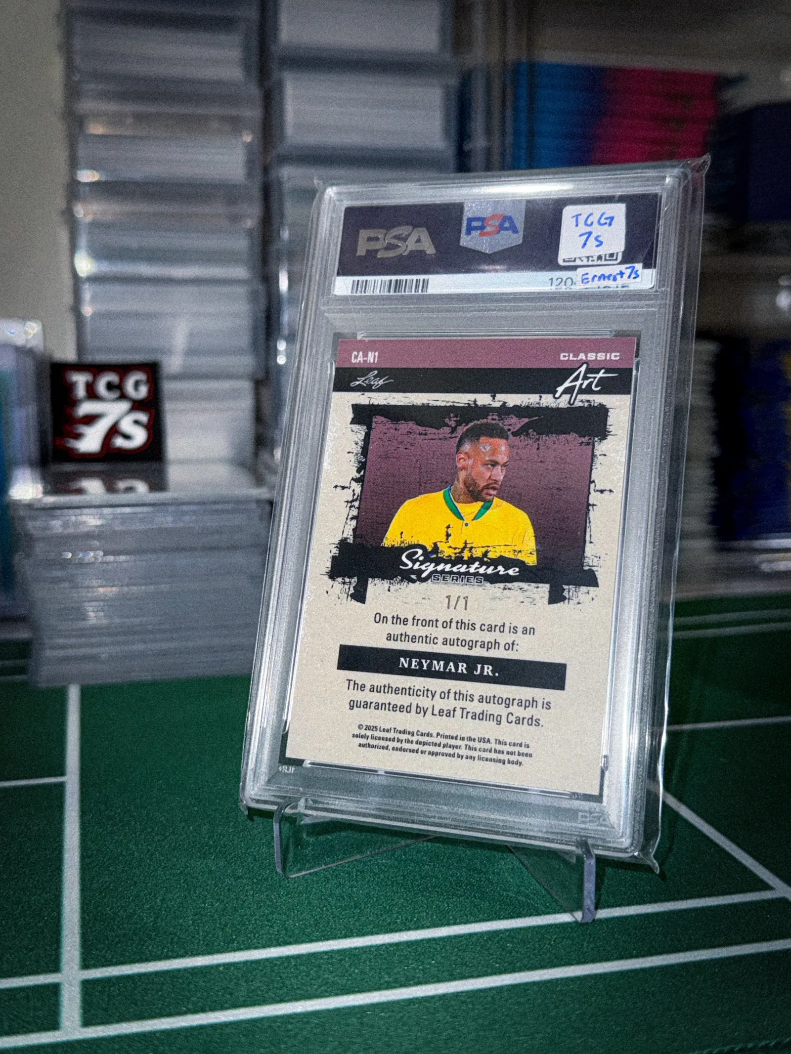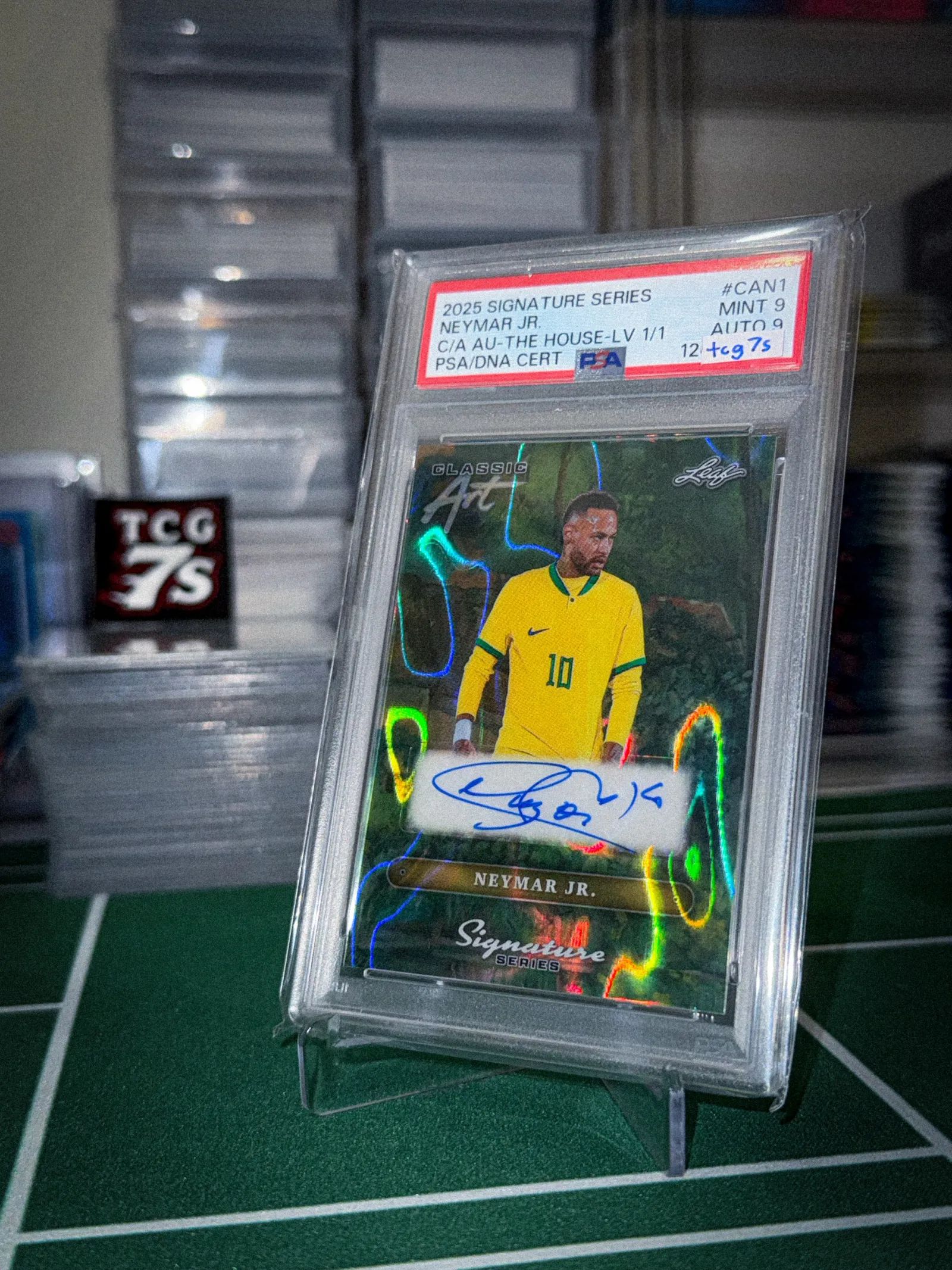 ✅ 2025 Signature Series – “Classic Art” ✅ True 1/1 — only one in existence ✅ On-card Neymar Jr. autograph (PSA/DNA cert) ✅ PSA graded Mint 9 / Auto 9 ✅ Super clean holo finish, beautifully centered ✅ Iconic Brazil national team jersey action shot ✅ Perfect for high-end football collectors & investors