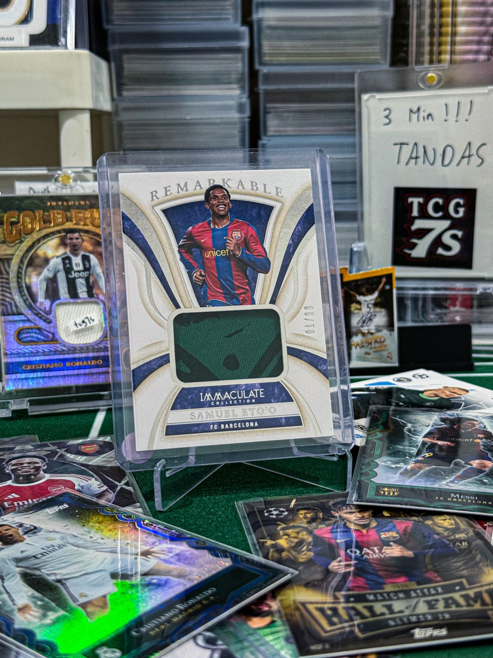 Rare Samuel Eto’o “Remarkable” Patch Card from Panini Immaculate Collection — 01/99 (First Print!) Features a player-worn patch.