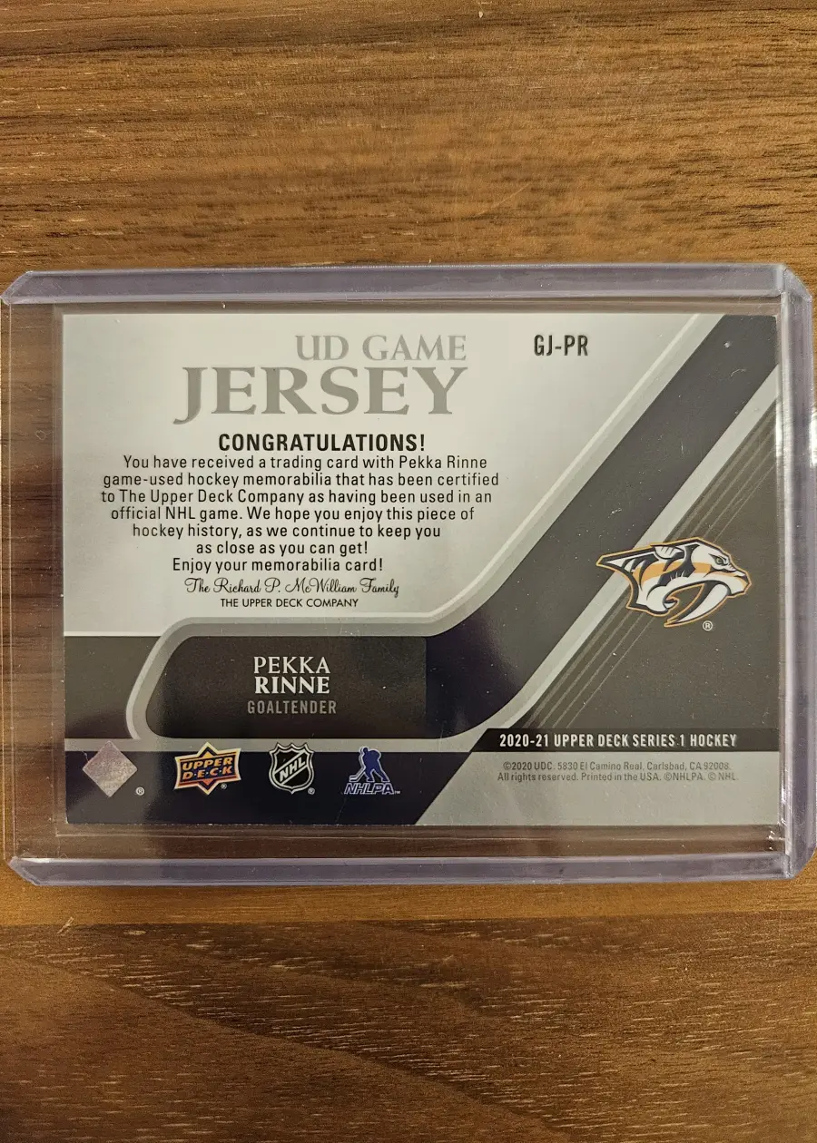 2020 Upper Deck Series 1 #GJ-PR Pekka Rinne Game Used Jersey Relic