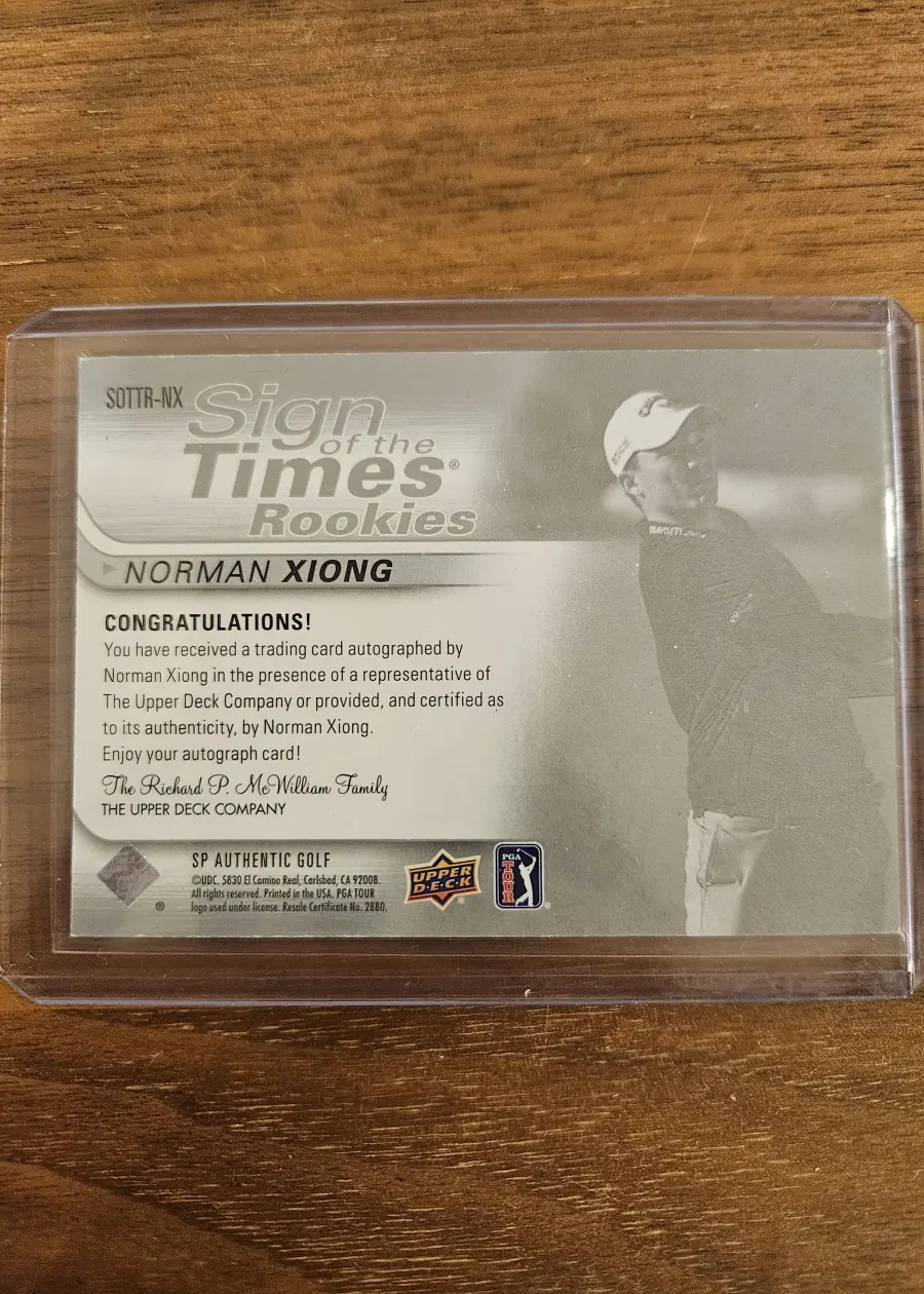 2021 Upper Deck SP Authentic Golf #SOTTR-NX Norman Xiong Sign of the Times Rookies RC Auto