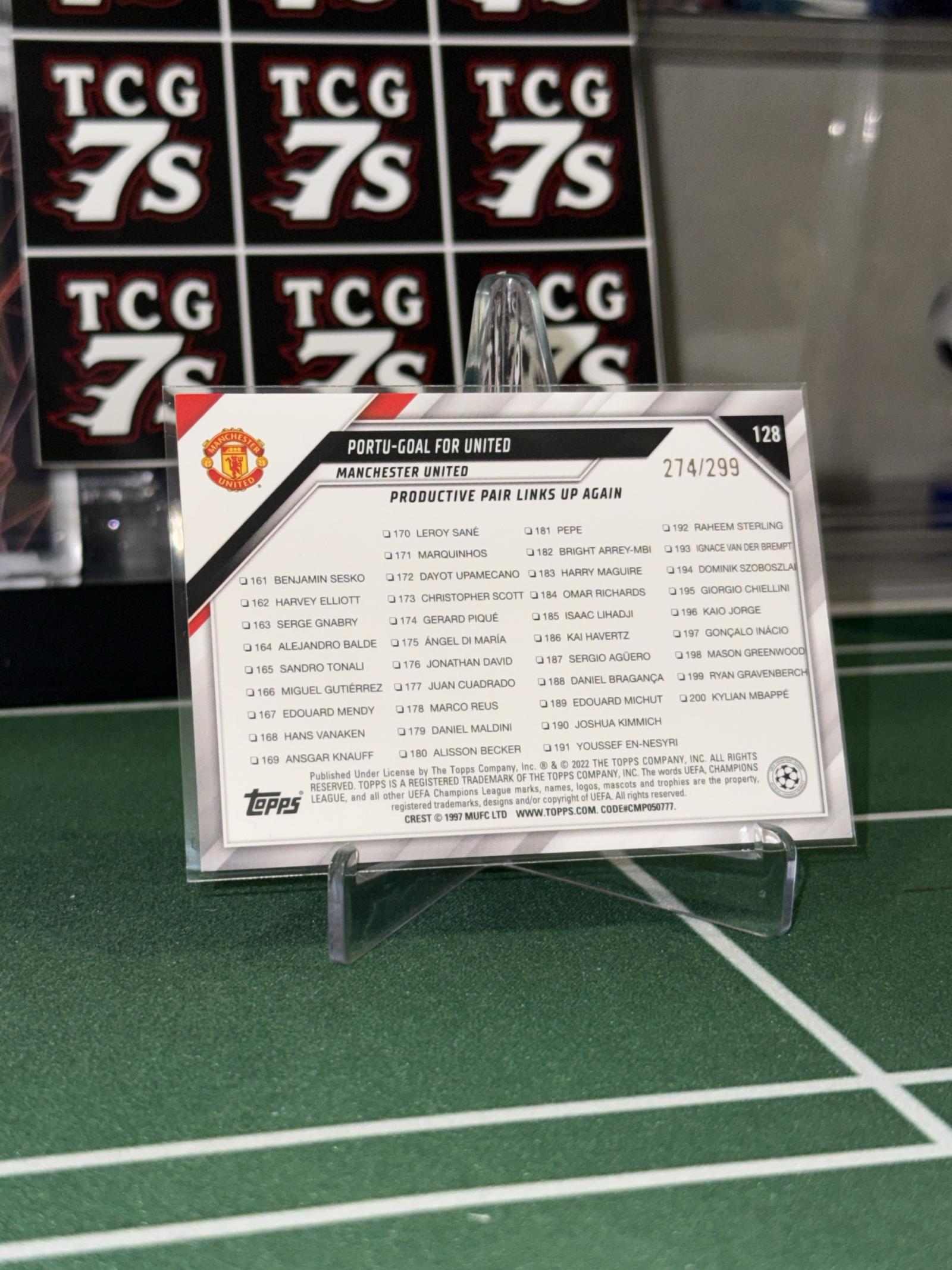 ✅ Topps UEFA Champions League 2021-22 – Portu-Goal For United Insert (#128) ✅ True serial numbered /299 (limited print run, strong collectibility) ✅ Vibrant holographic sparkle foil finish with sharp centering and clean corners ✅ Manchester United legends — Ronaldo’s return season with Bruno Fernandes creating magic ✅ Perfect for Man United fans, Ronaldo & Bruno collectors, Portugal supporters, or high-end soccer investors