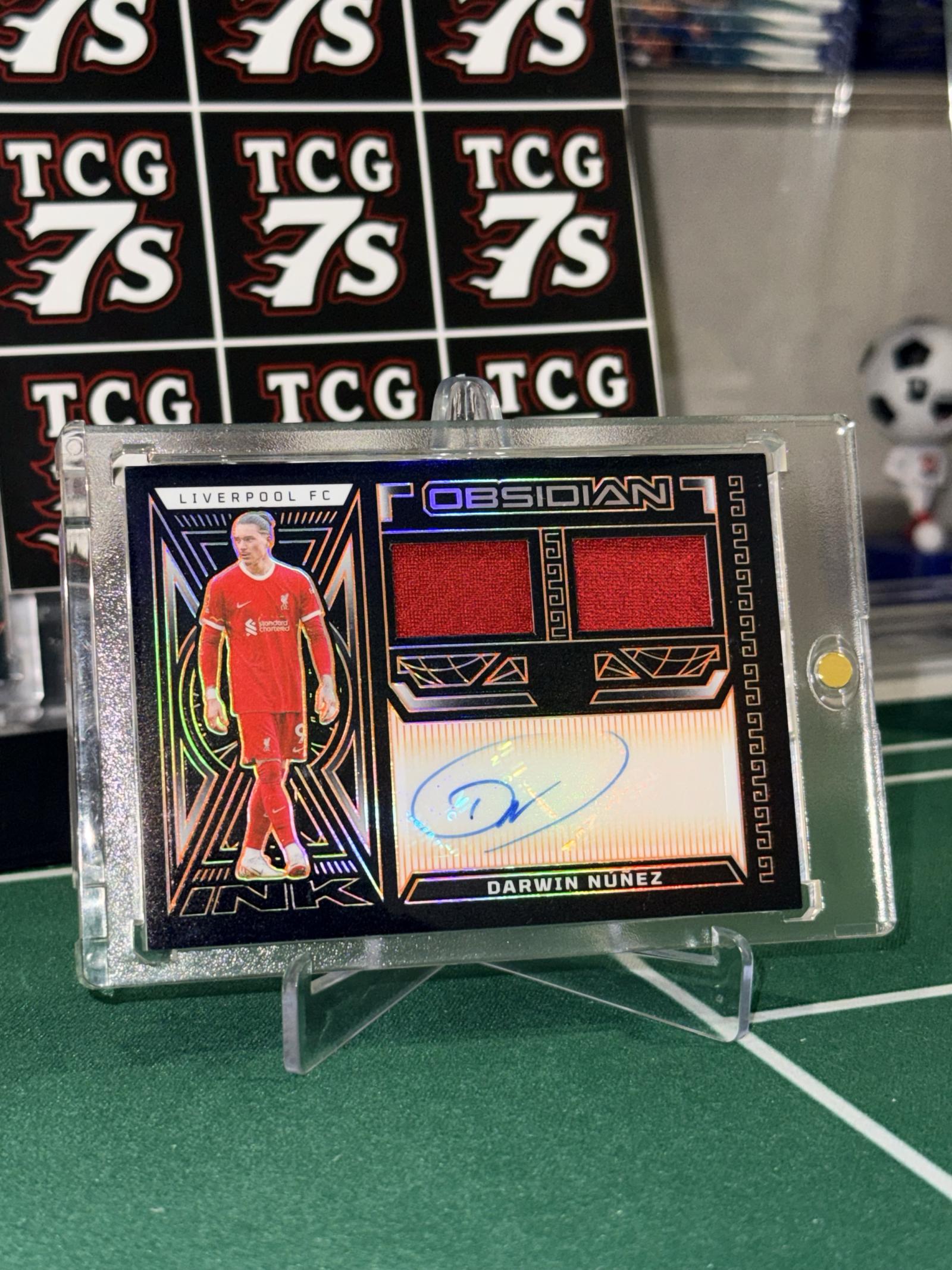 ✅ Panini Obsidian Ink – Dual Jersey Ink Autograph Relic Insert ✅ True serial numbered /99 (limited print run, high collectibility) ✅ Genuine dual player-worn jersey patches + autograph by Darwin Núñez ✅ Clean centering, sharp corners, vibrant black & holographic Obsidian design with rainbow refractor ✅ Liverpool FC star in his prime — Standard Chartered kit era classic ✅ Perfect for Liverpool fans, Premier League collectors, Uruguay internationals, or high-end soccer investors